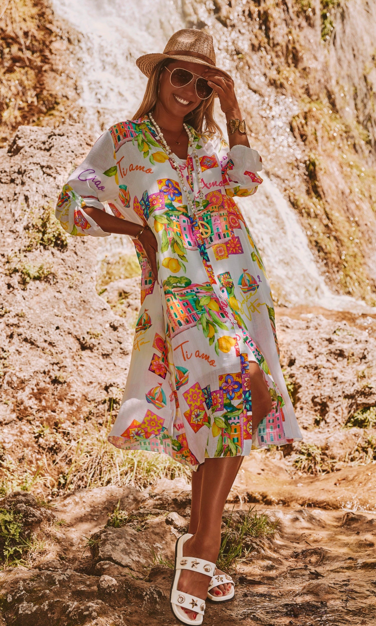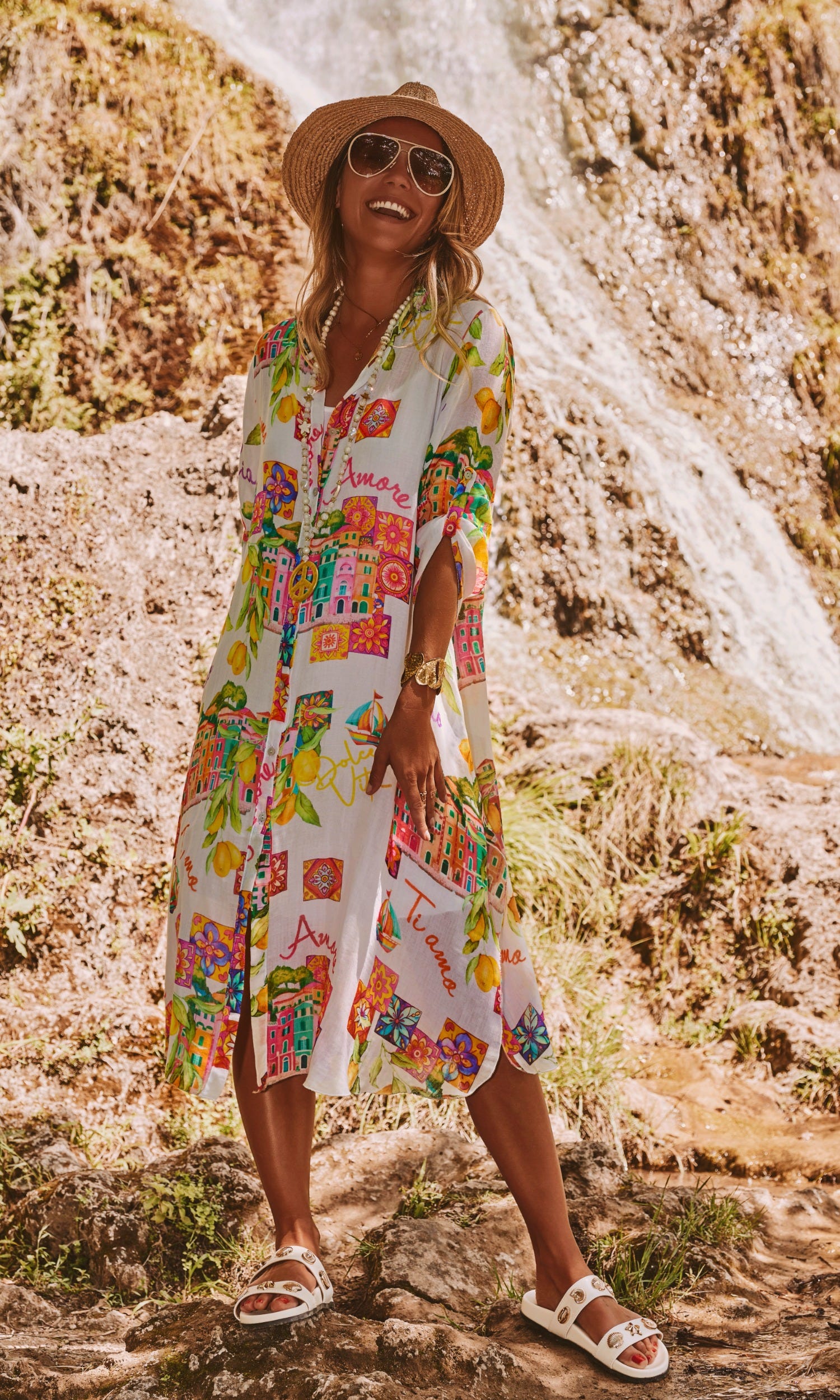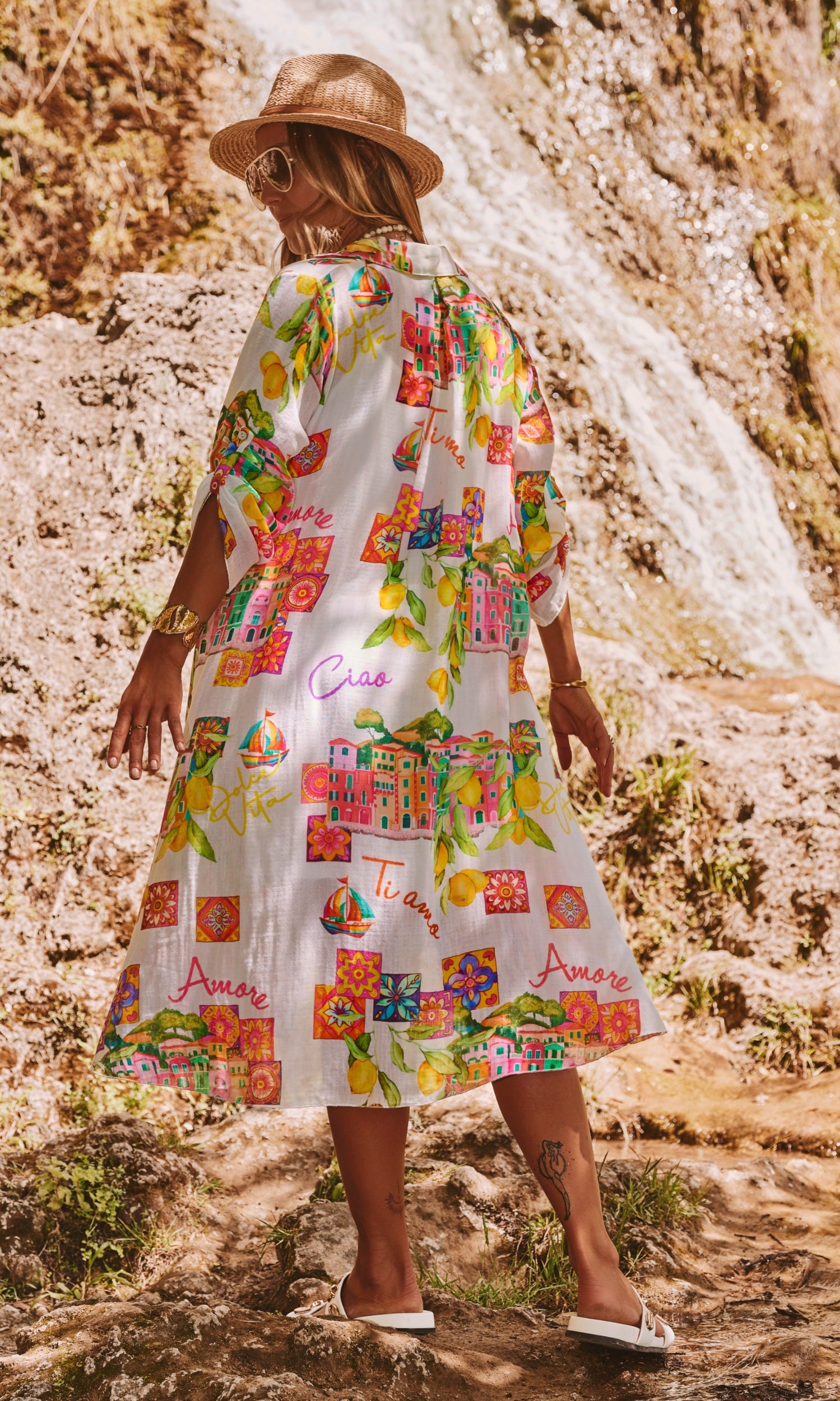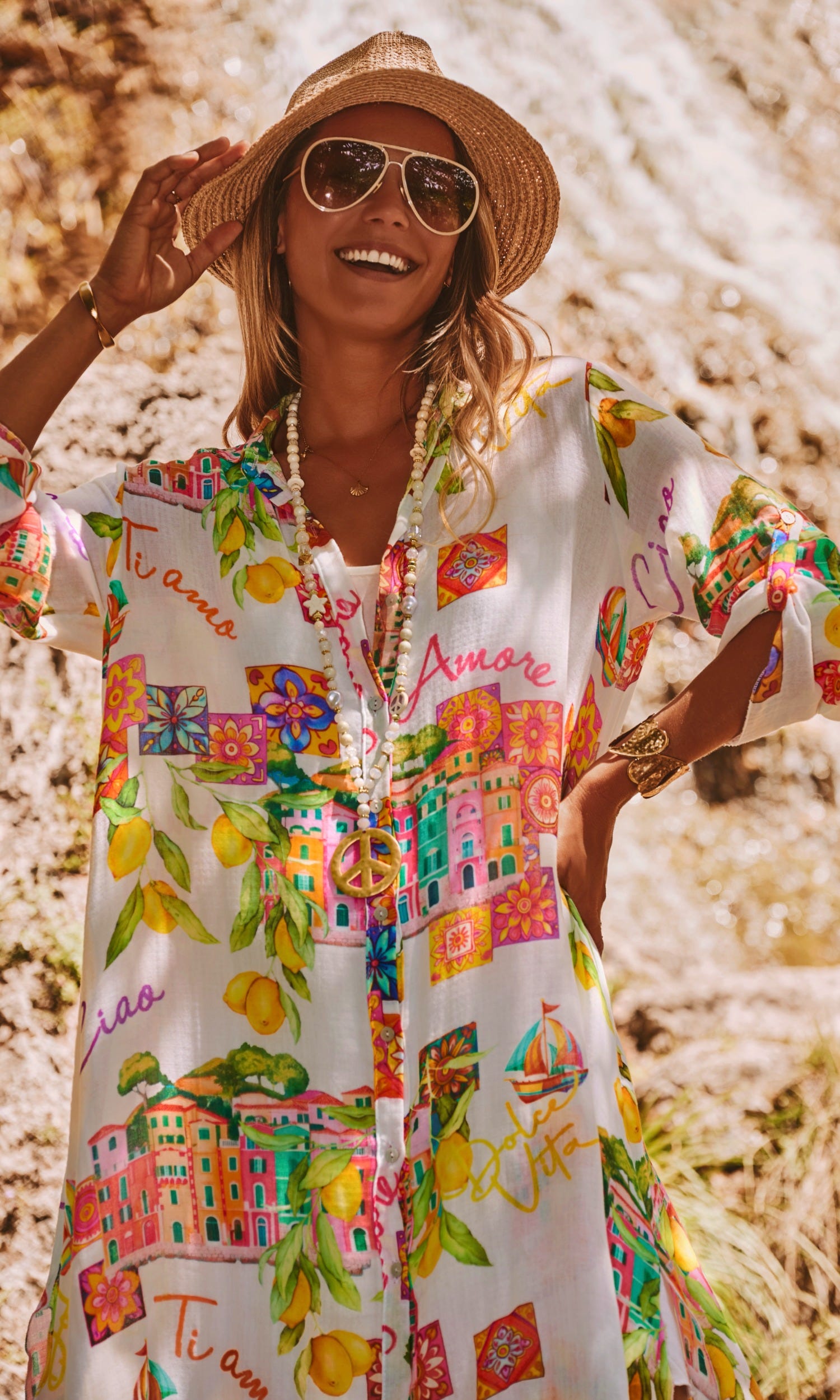 Son fond turquoise est sublimé par de délicats motifs Dolce Vita, parfaits pour une allure chic et estivale.