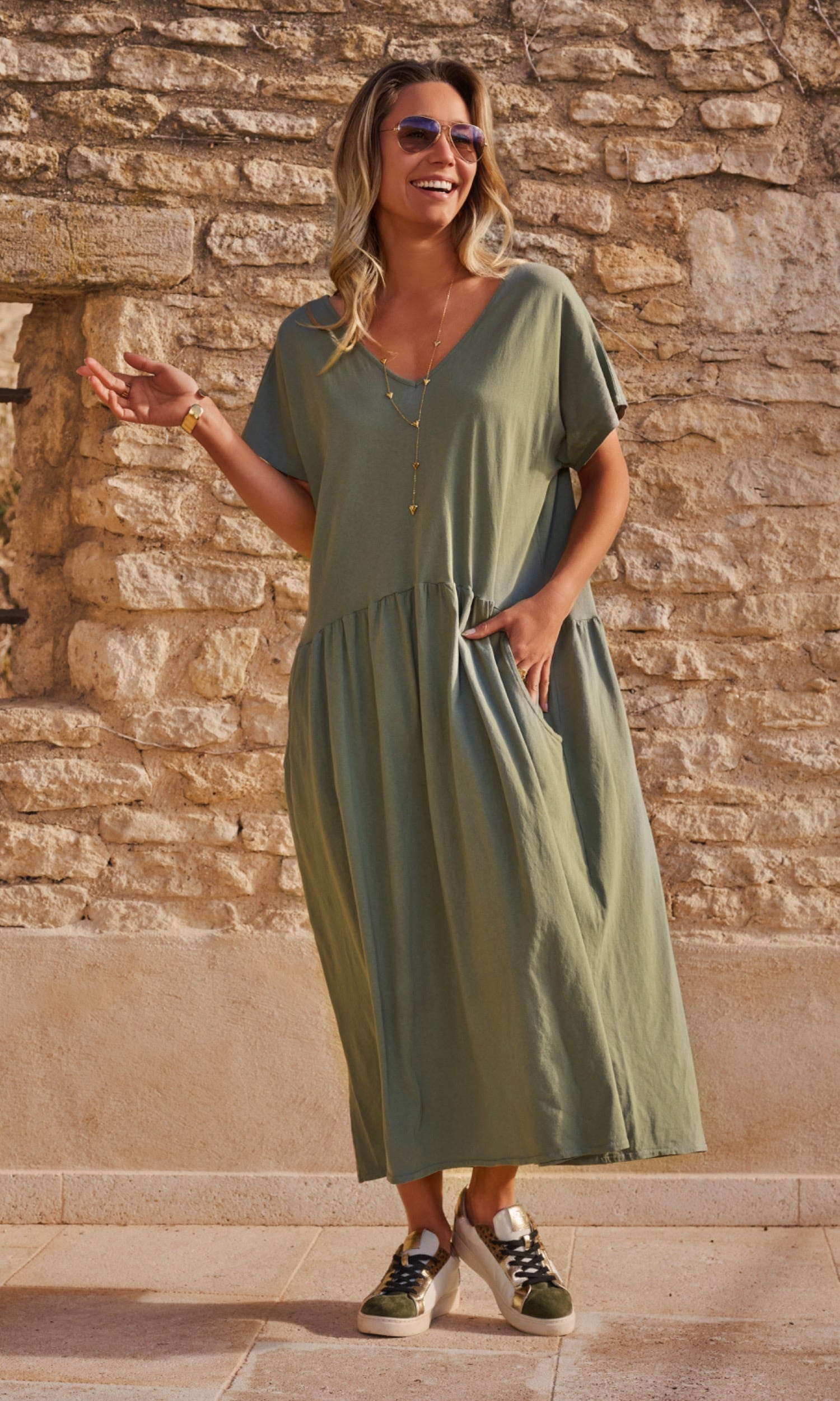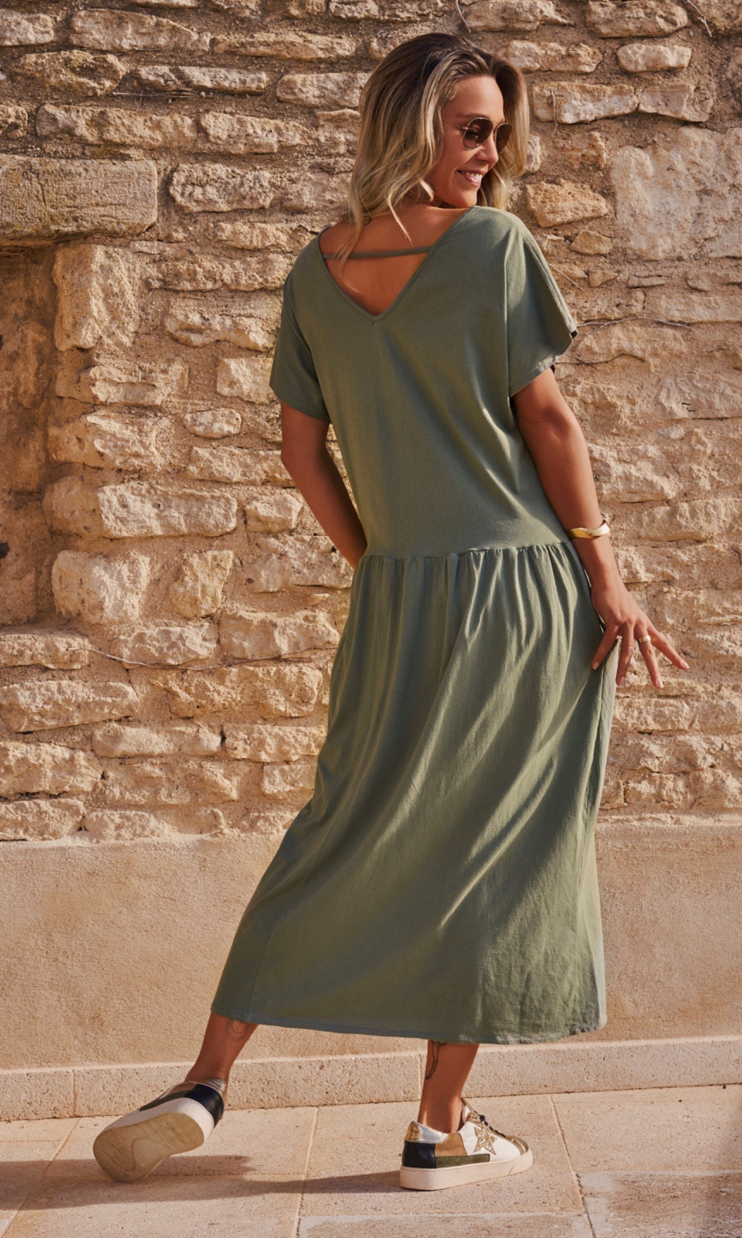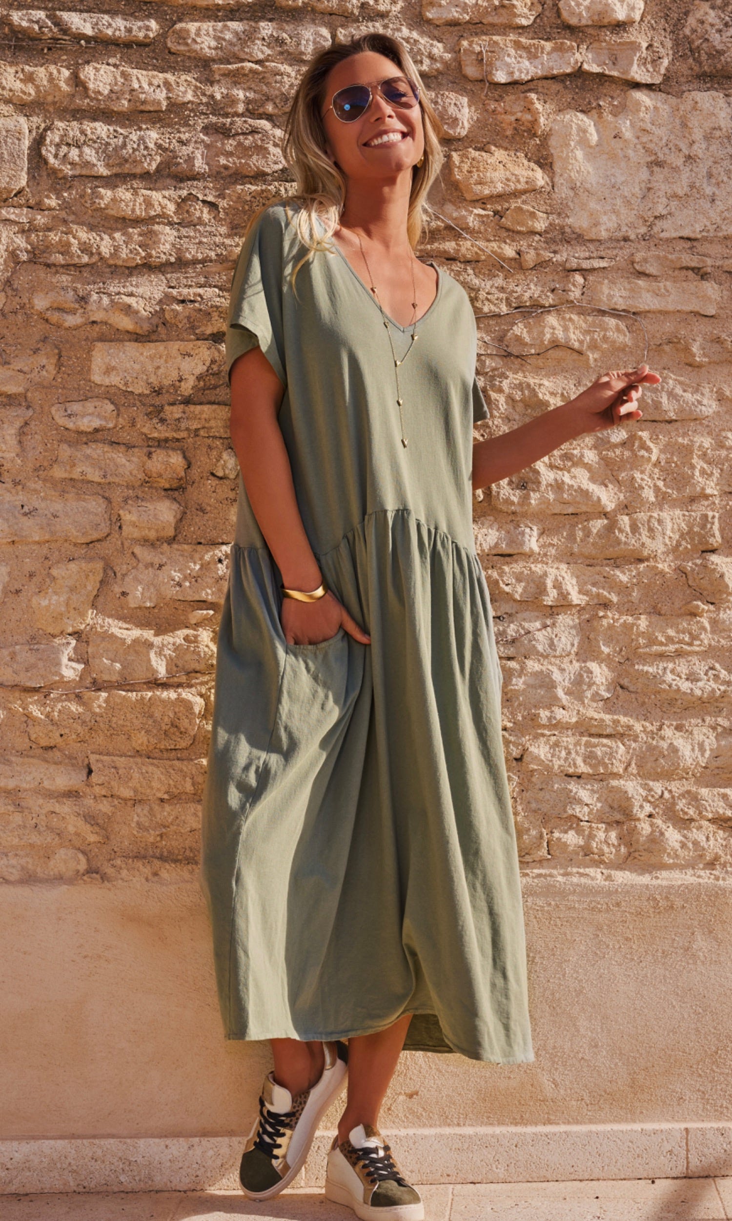 Optez pour cette robe kaki en coton à la coupe ultra-loose pour un look décontracté et stylé.