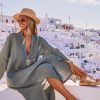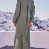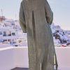 Découvrez notre robe longue en lin couleur kaki, à la coupe loose élégante.