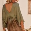 Ses manches courtes bouffantes ajoutent une touche romantique, tandis que le col V généreux, tant à l'avant qu'au dos, met en valeur la silhouette.