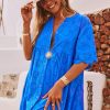 Son col en V et ses manches courtes apportent une touche d’élégance, tandis que le bas volanté offre du mouvement à chaque pas.