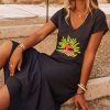 Ajoutez une touche de soleil à votre garde-robe avec cette ravissante robe noire en coton.