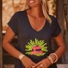 Sa coupe droite et son col V flattent la silhouette, tandis que les manches courtes ajoutent une note estivale.