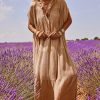 Découvrez notre magnifique robe longue camel, alliant élégance et confort.