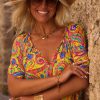 Son col V, agrémenté de liens à nouer, et ses manches courtes ajoutent une touche d'élégance.