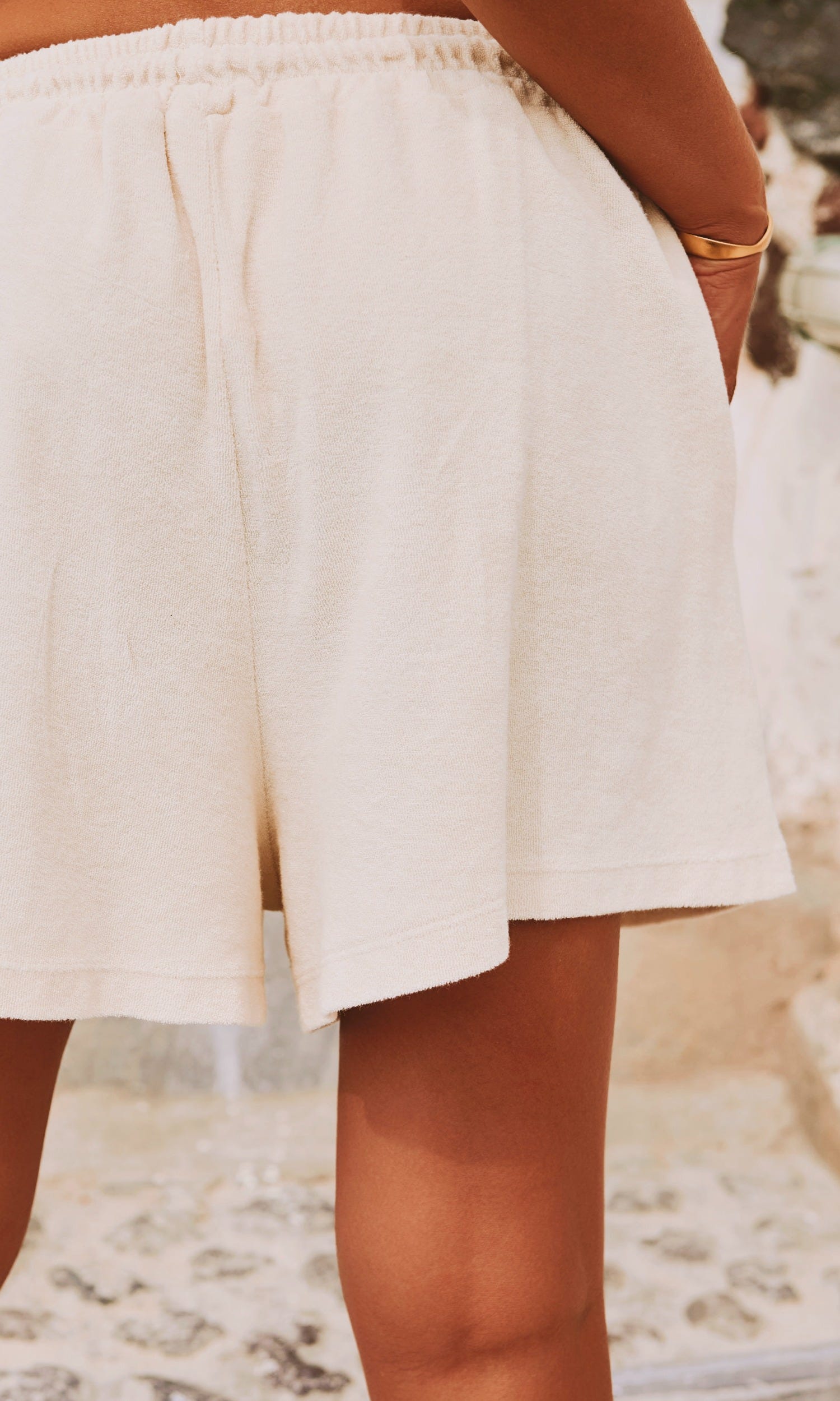 Optez pour le confort avec ce short en bouclette éponge couleur vanille.