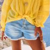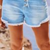 Découvrez ce short bleach à revers au look décontracté, doté de passants à la taille et d'une fermeture à boutons apparente avec finition frangée.