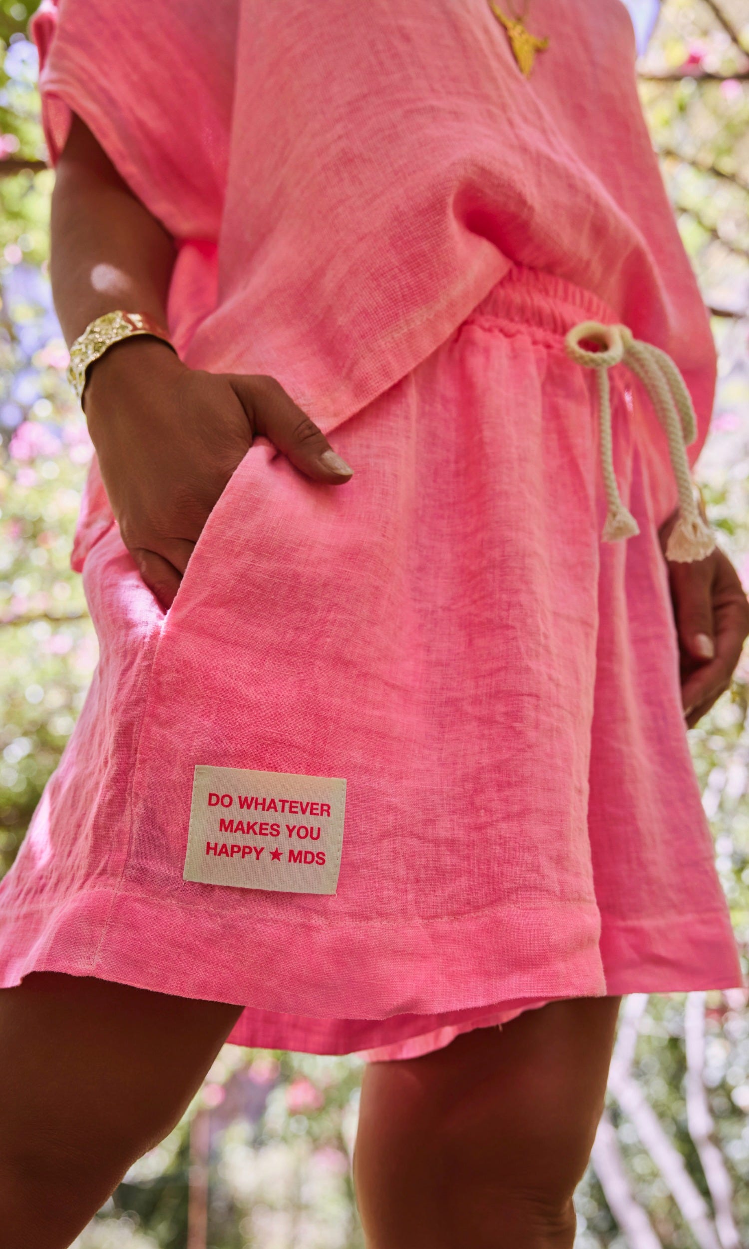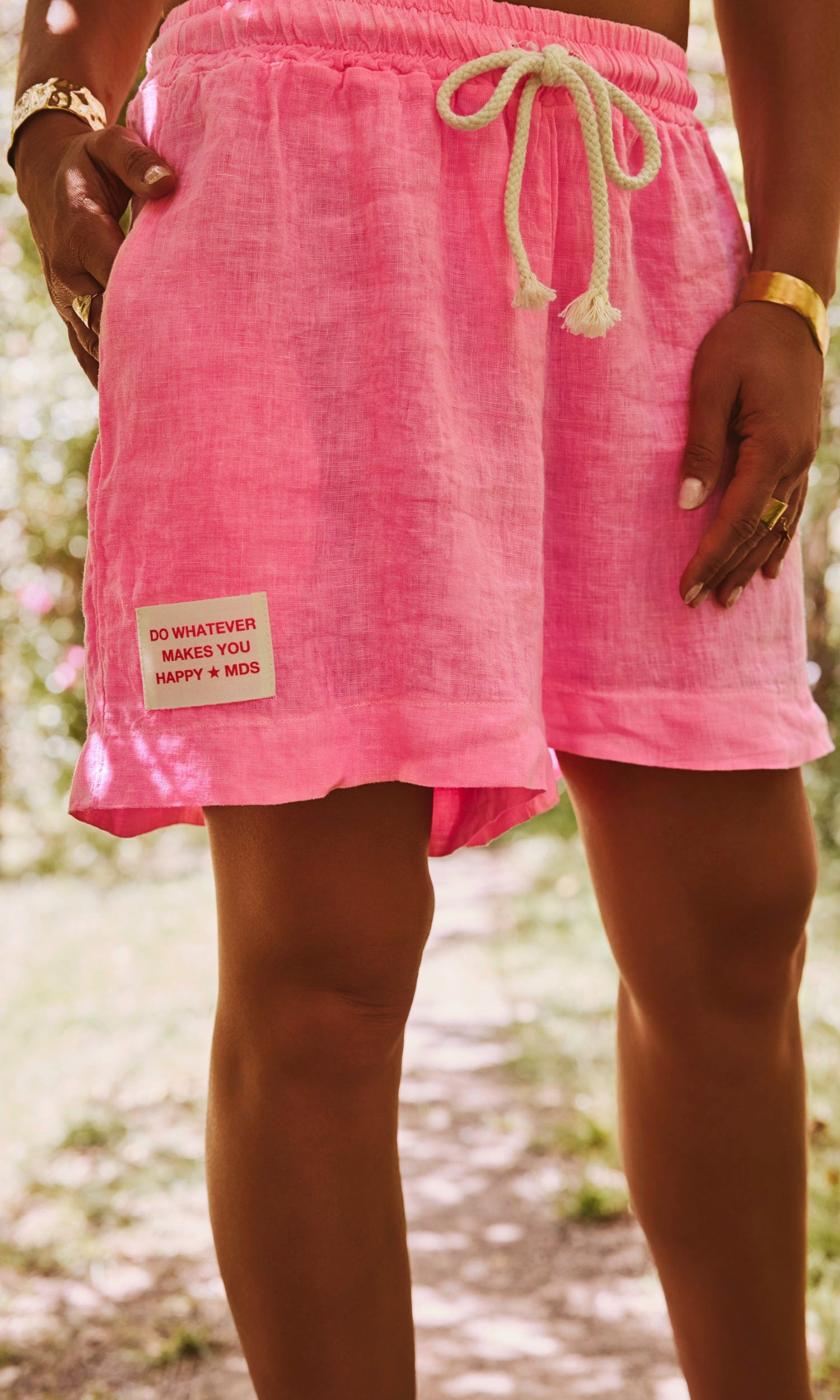 Optez pour le confort et la légèreté avec ce short rose fluo en lin.