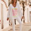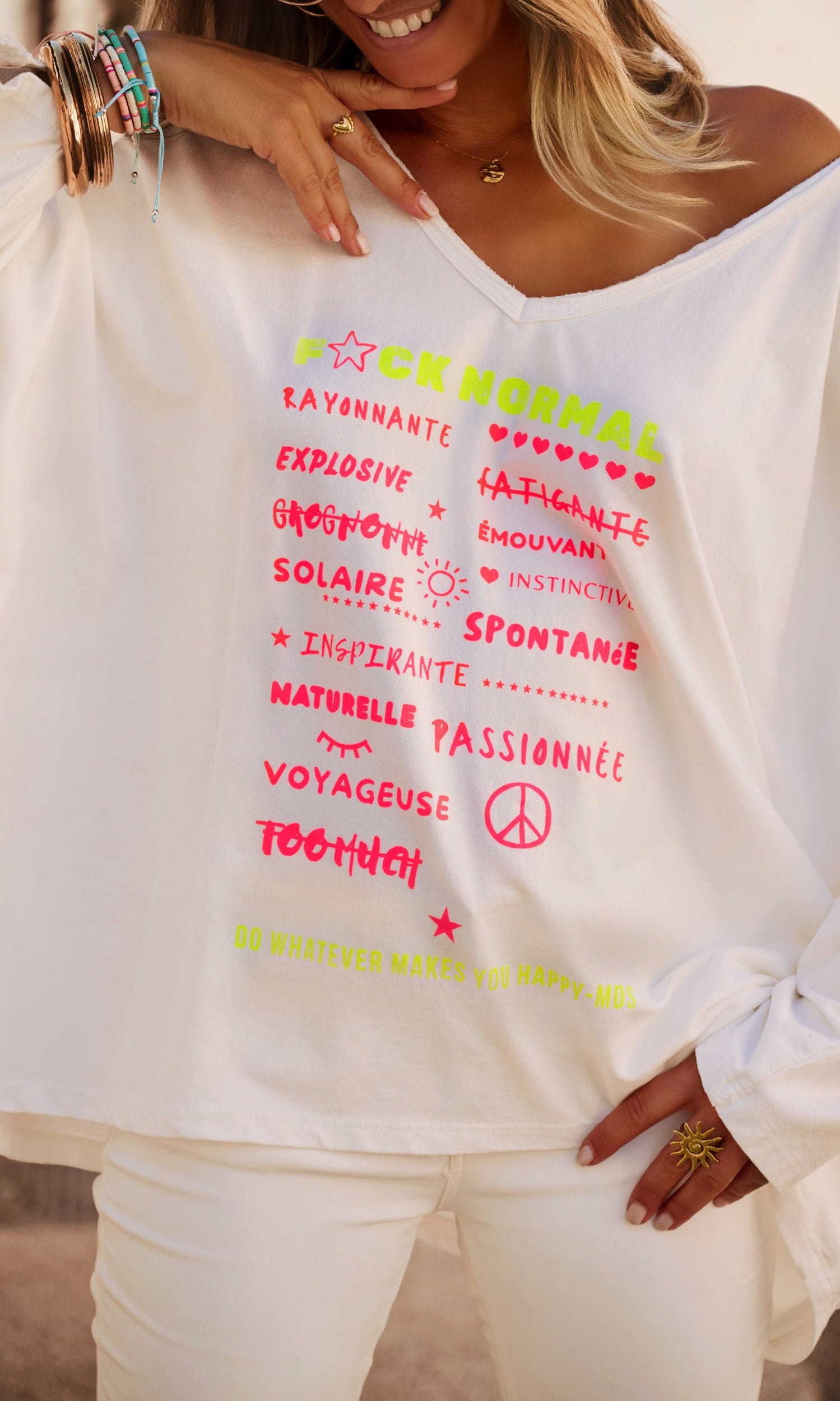 Agrémenté d'un motif writings, ce modèle à manches longues est parfait pour un look casual-chic.