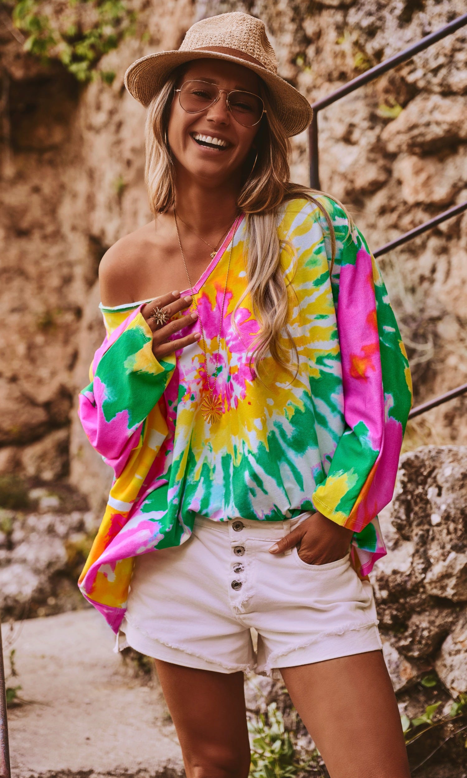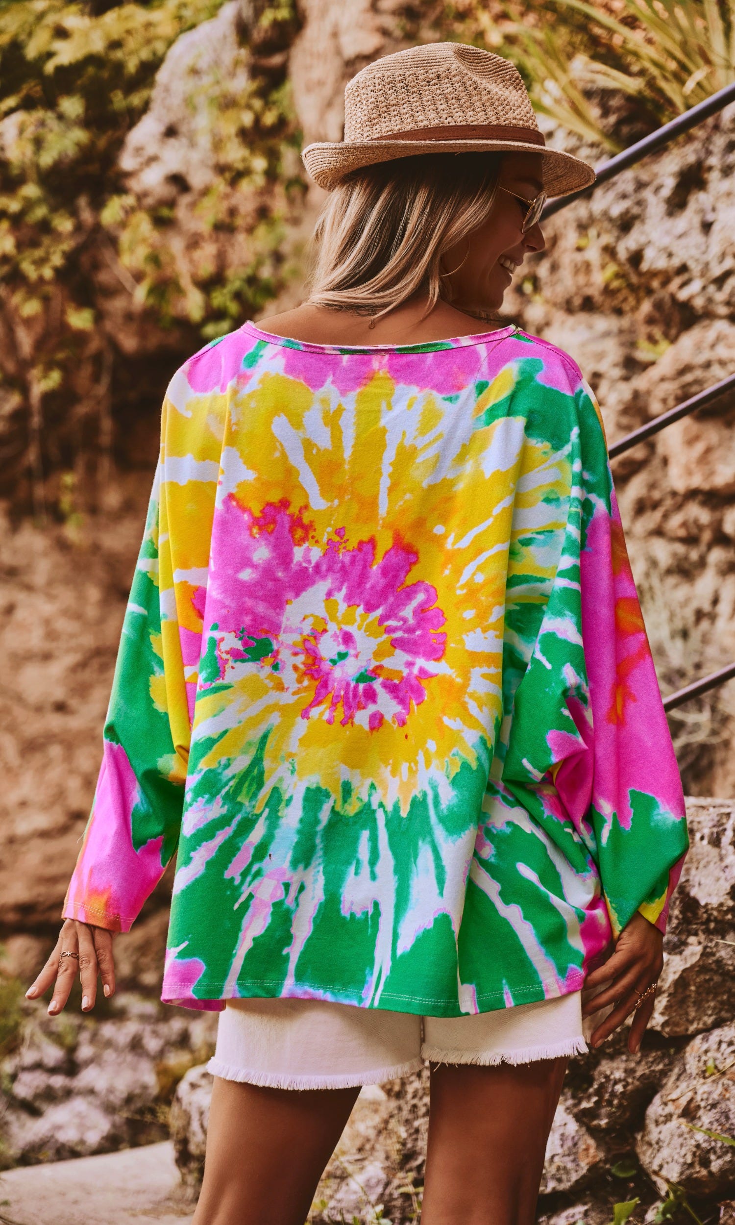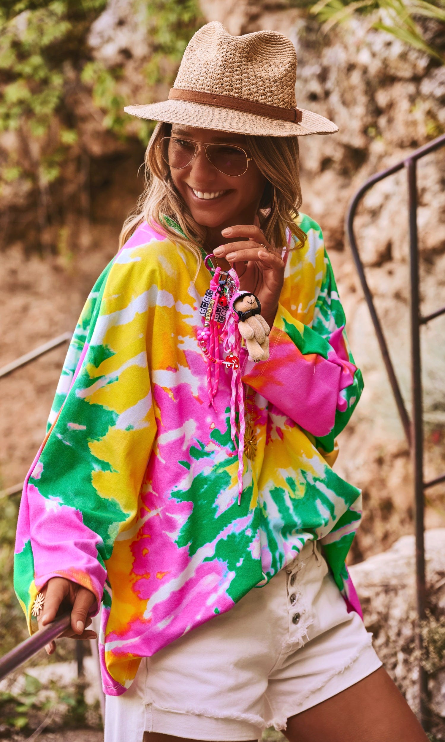 Le motif tie and dye vert apporte une note vibrante et tendance, parfait pour rehausser vos tenues quotidiennes.