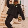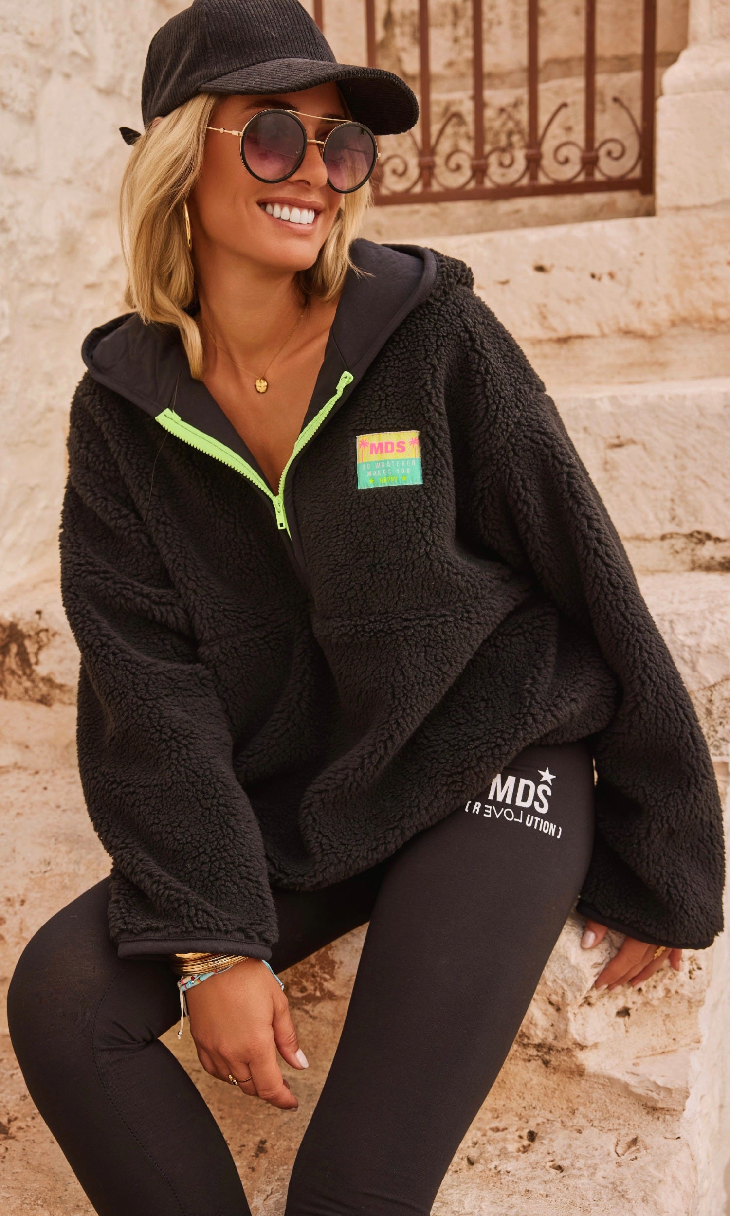 Découvrez notre sweat polaire noir oversize, à col montant et capuche, parfait pour allier confort et style.