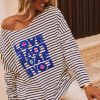 Ce sweat blanc marinière à la coupe droite met en avant un col bateau élégant et des manches longues accentuées de surpiqûres.