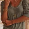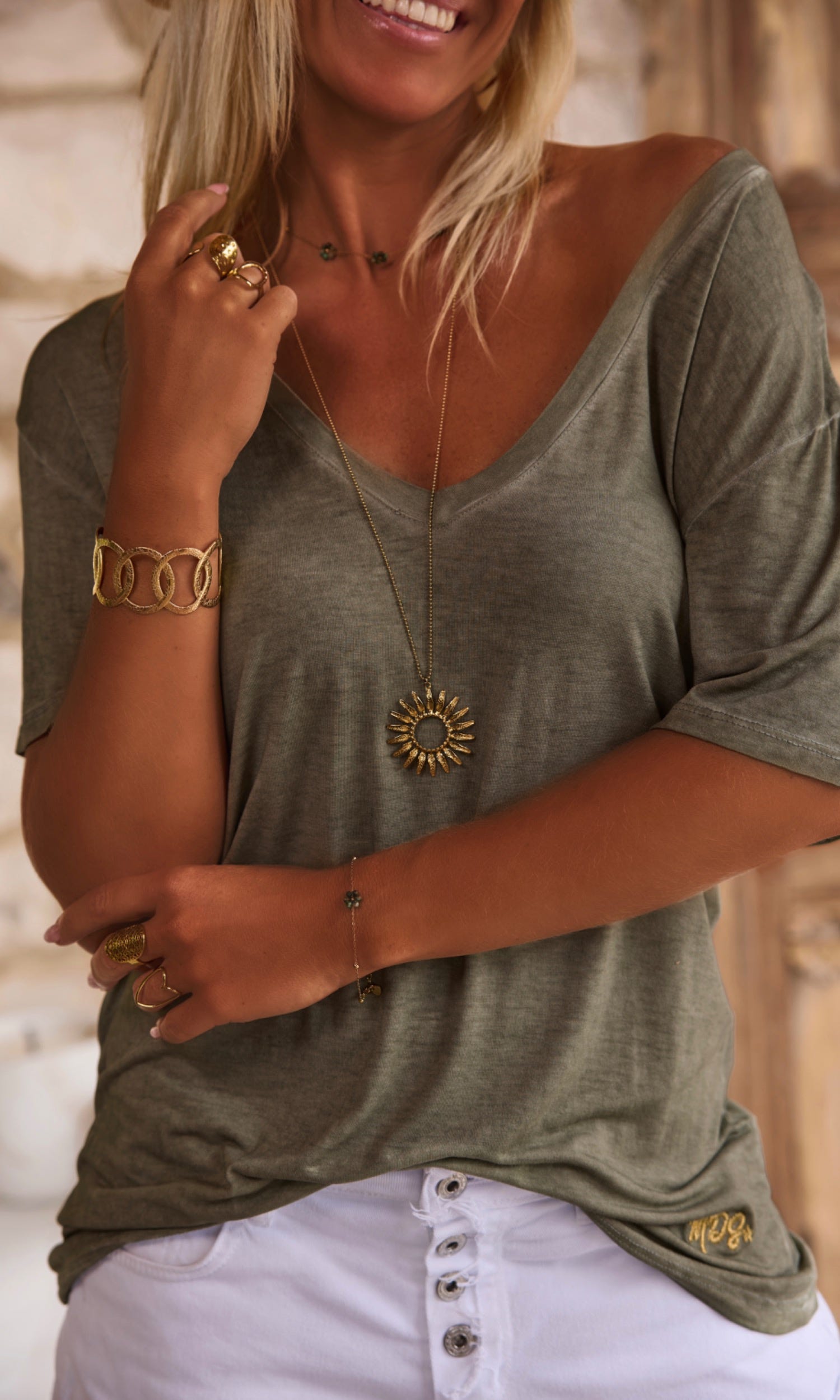 Découvrez notre t-shirt fluide à col V et manches courtes, parfait pour une allure décontractée.