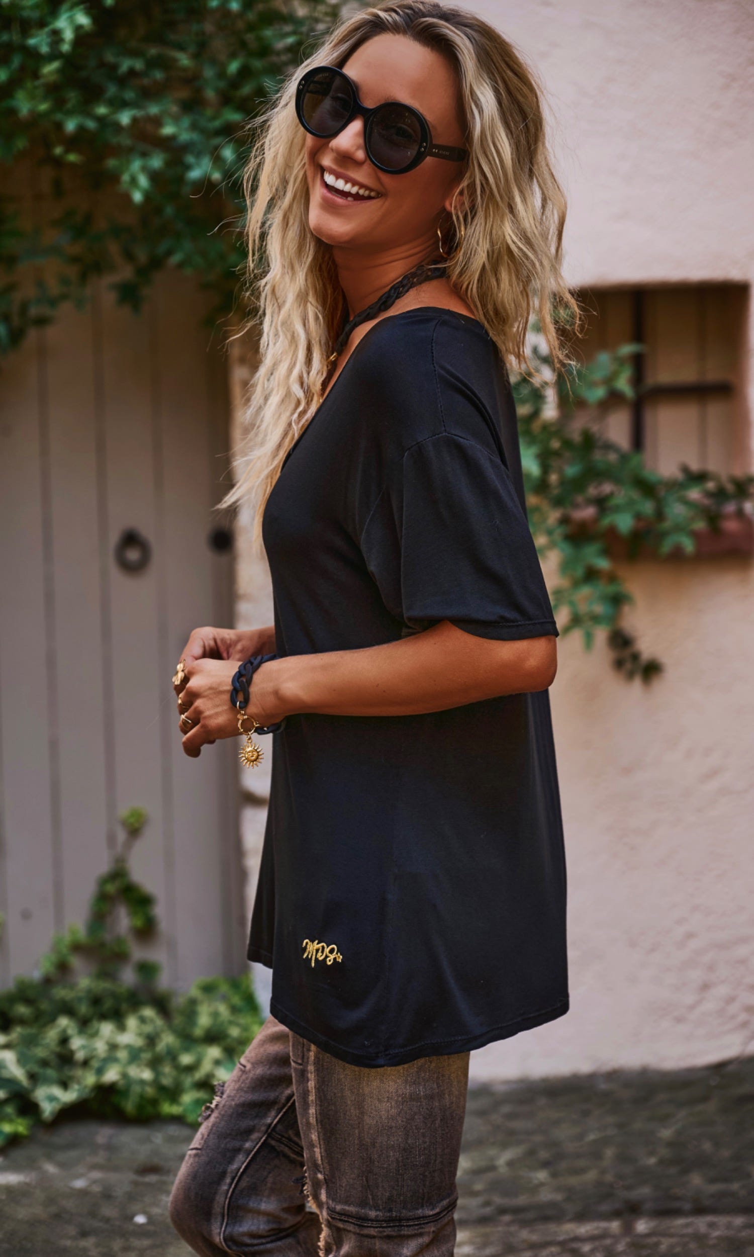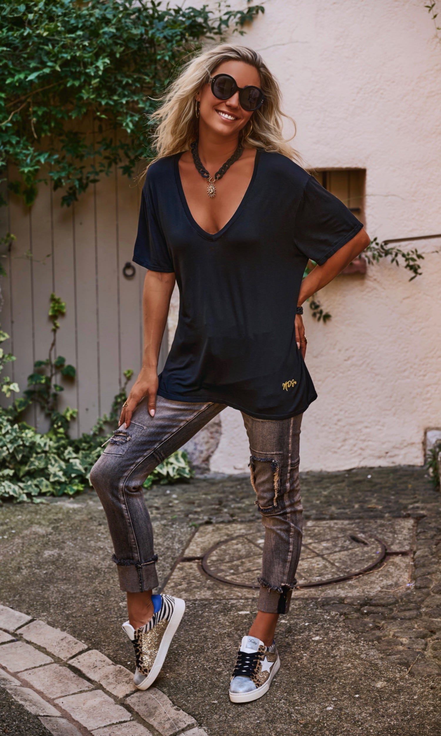 Découvrez notre T-shirt fluide à col V, parfait pour un look décontracté et élégant.