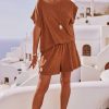 Découvrez notre T-shirt chocolat clair à coupe droite et loose.