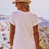 Son col V et ses manches courtes offrent une allure moderne, tandis que les finitions à bords francs ajoutent une touche d'originalité.