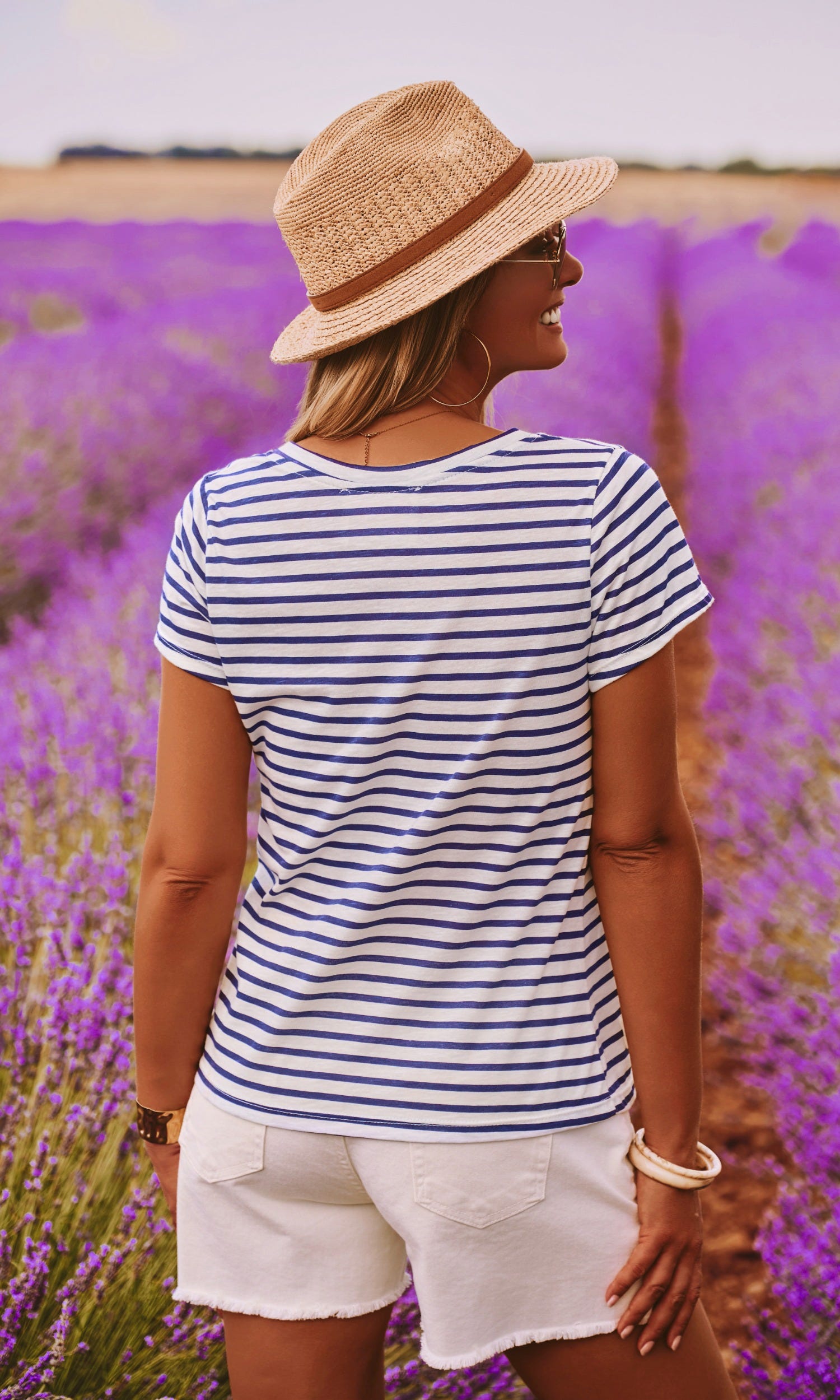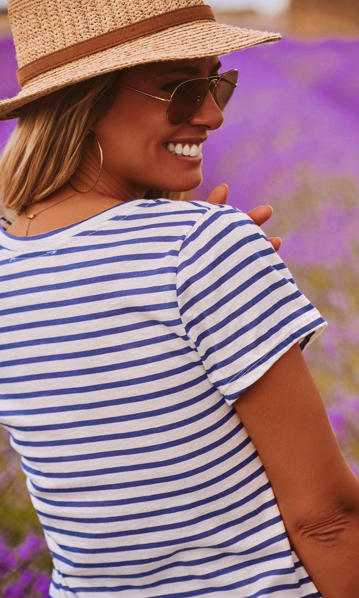 Optez pour une allure décontractée avec ce t-shirt marinière à la coupe droite.