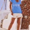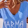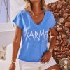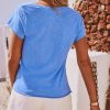 Découvrez notre T-shirt bleu droit à col V et manches courtes, parfait pour un look décontracté.