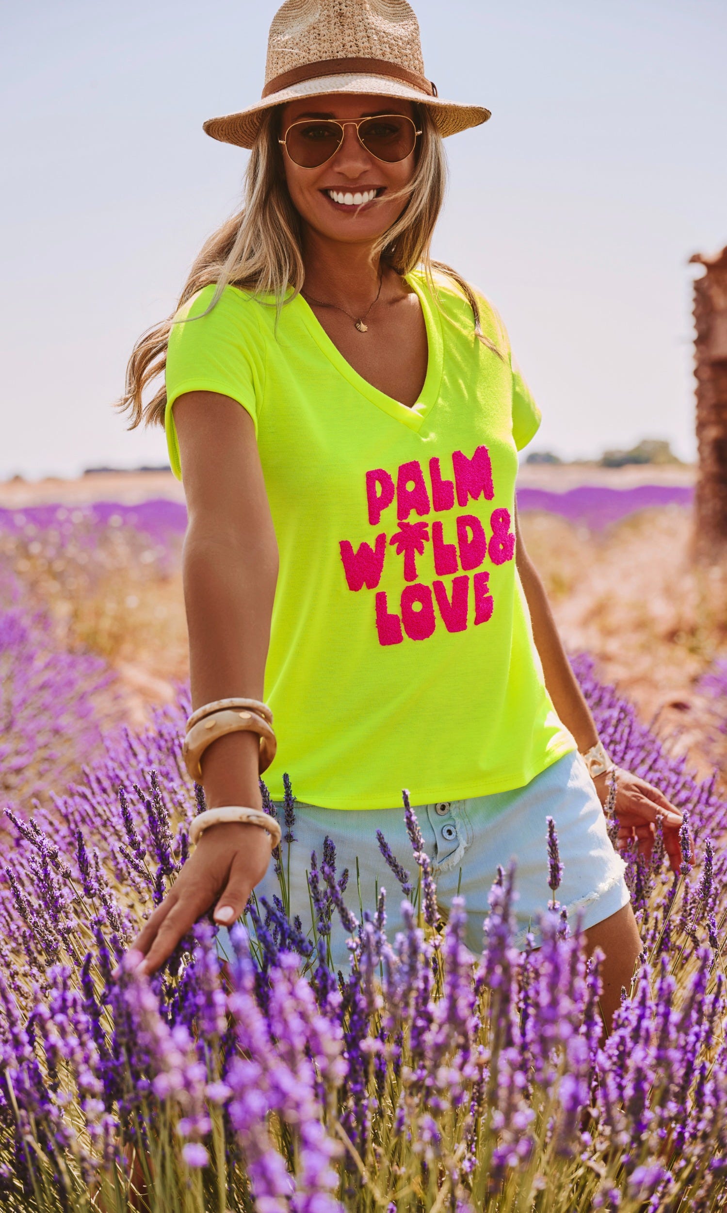 L’imprimé bouclette "Palm Wild and Love" rose sur le devant ajoute une touche vibrante et estivale.
