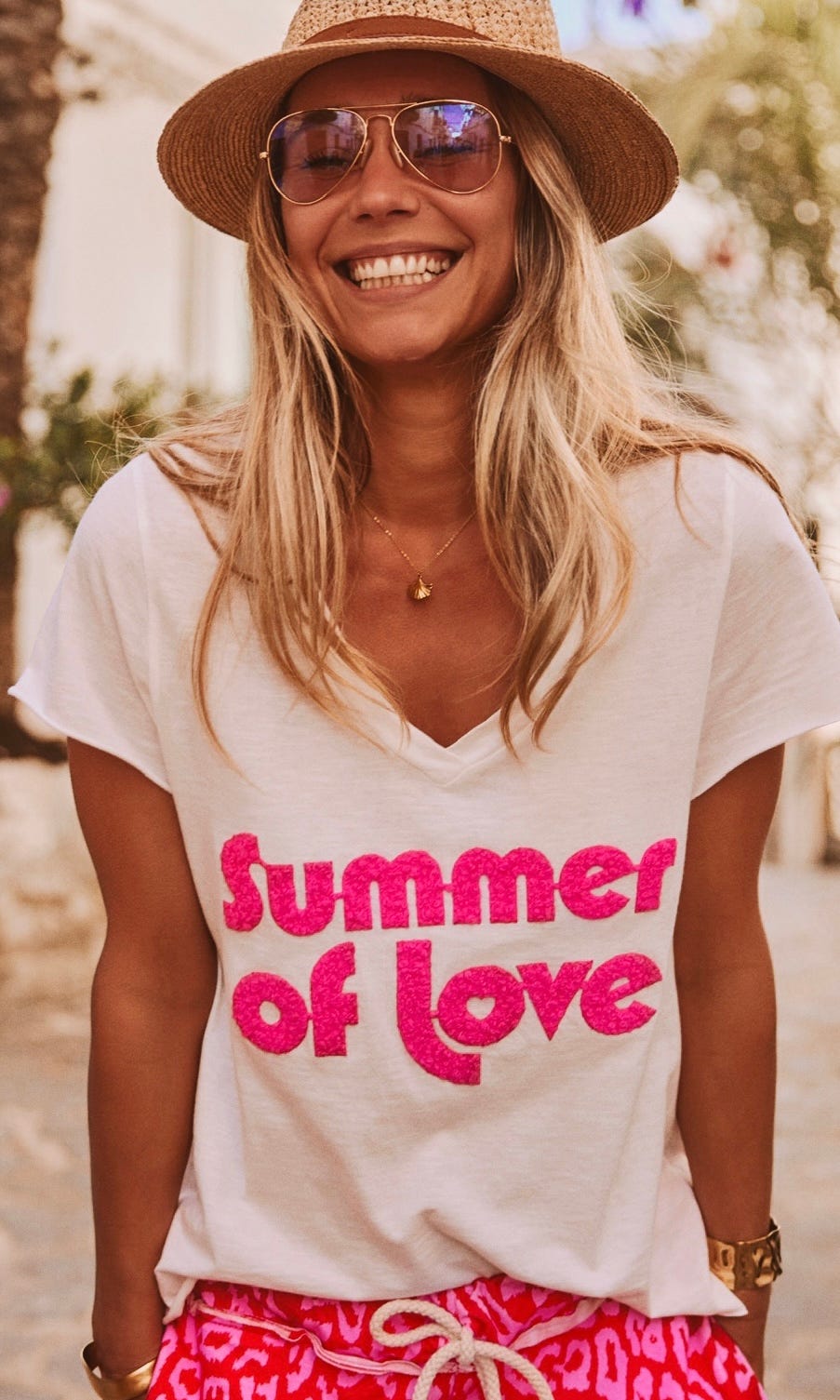 Arborant une impression en bouclette rose "Summer of Love" sur le devant, ce T-shirt évoque légèreté et esprit estival, parfait pour toutes vos sorties décontractées.