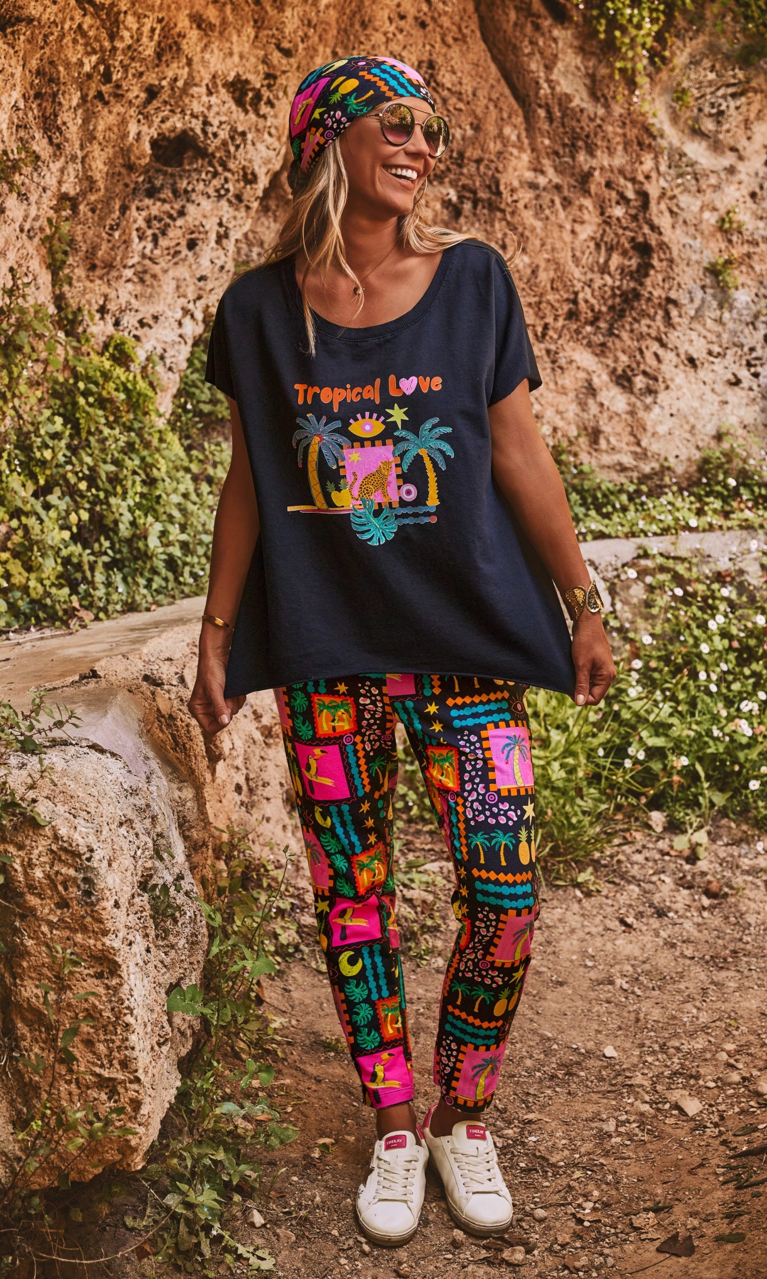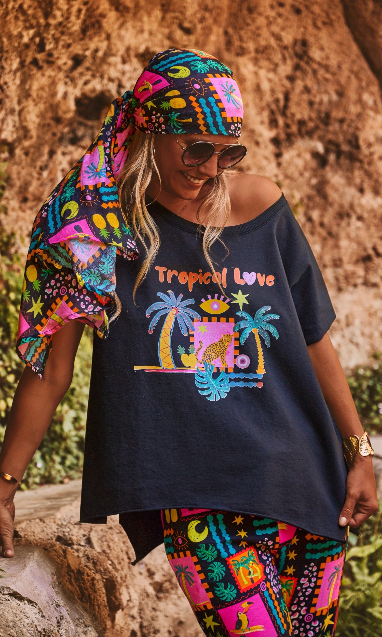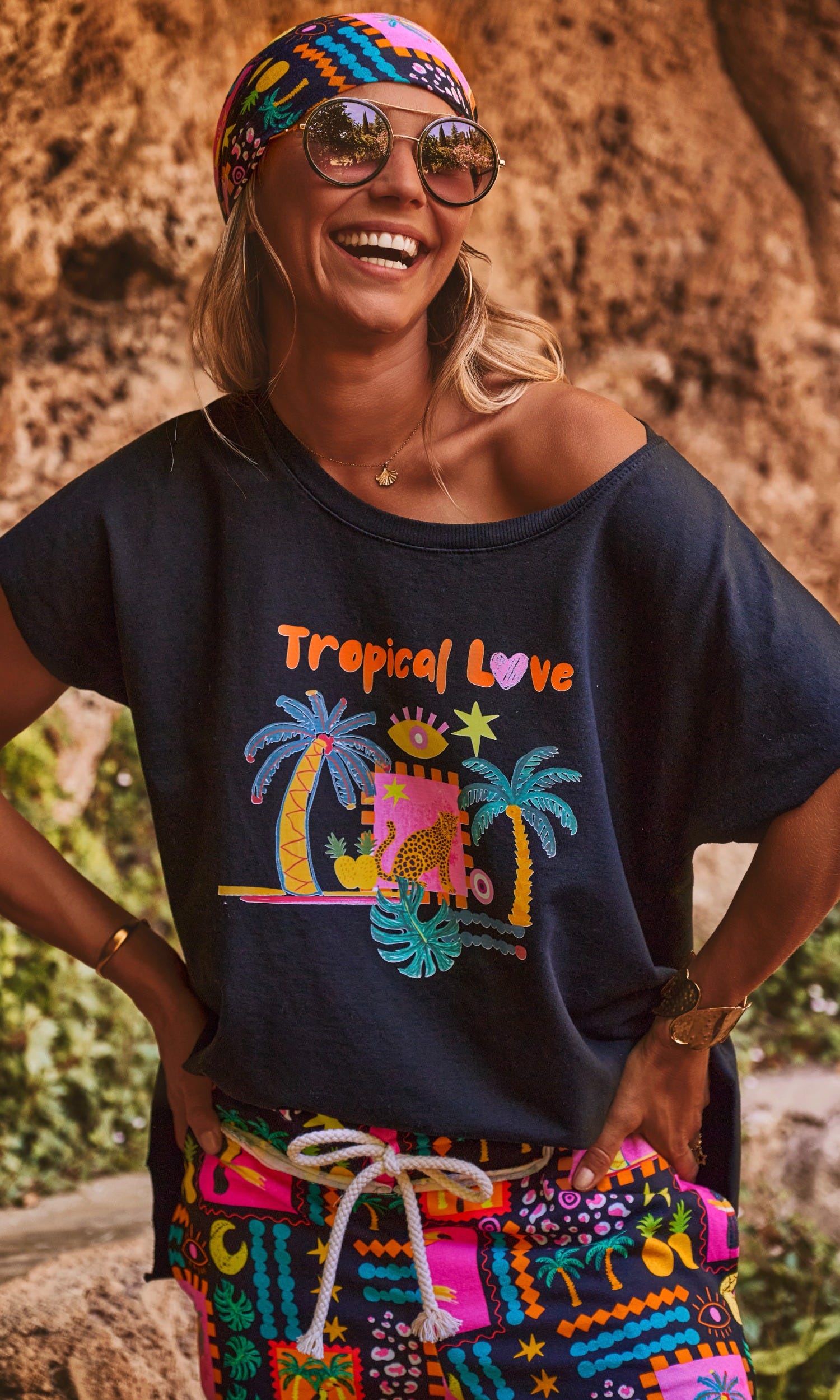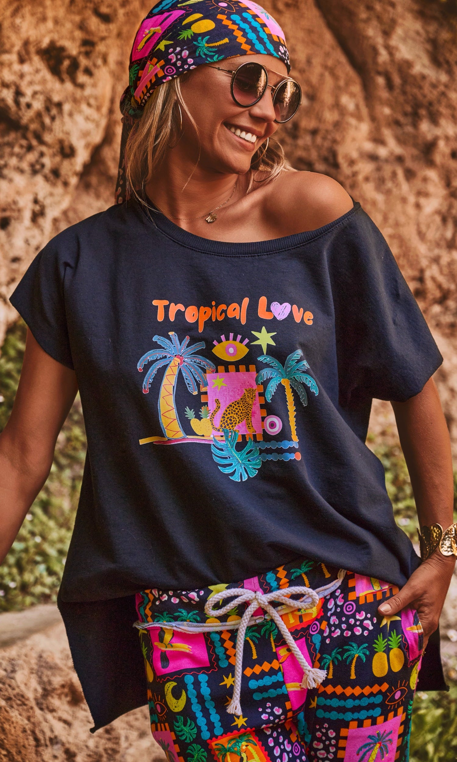Plus court sur le devant, il arbore un joli imprimé "Tropical Love".