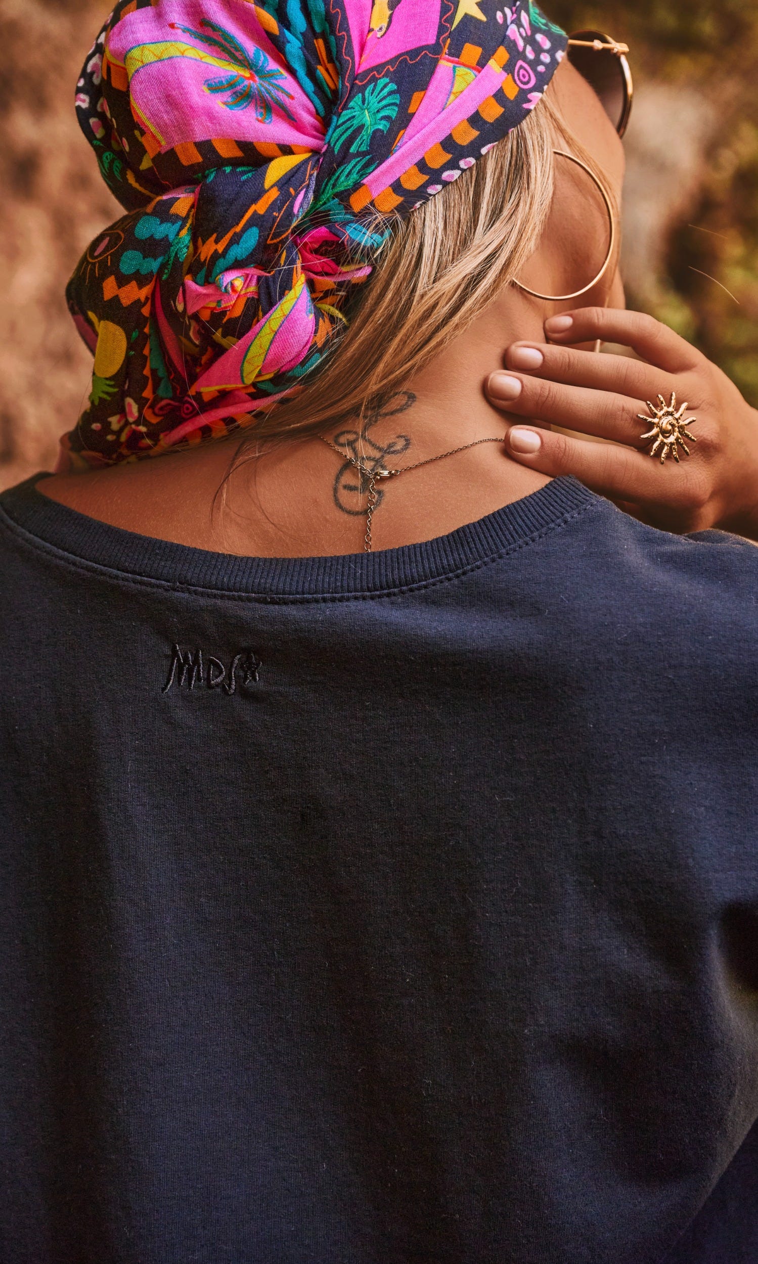 Découvrez notre t-shirt noir loose à la coupe trapèze.
