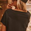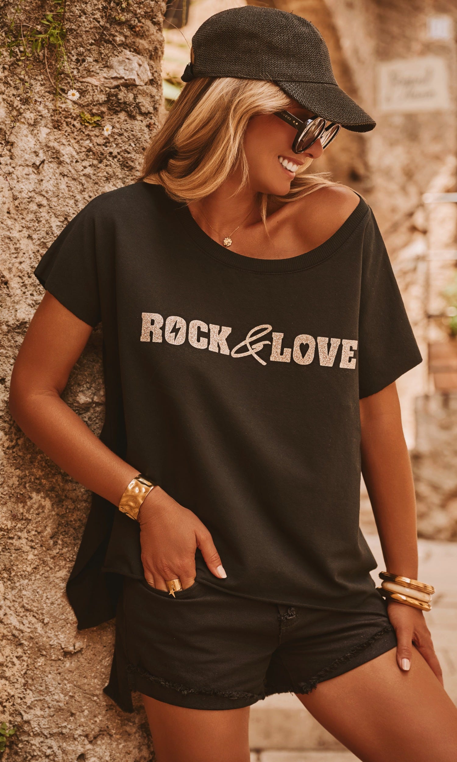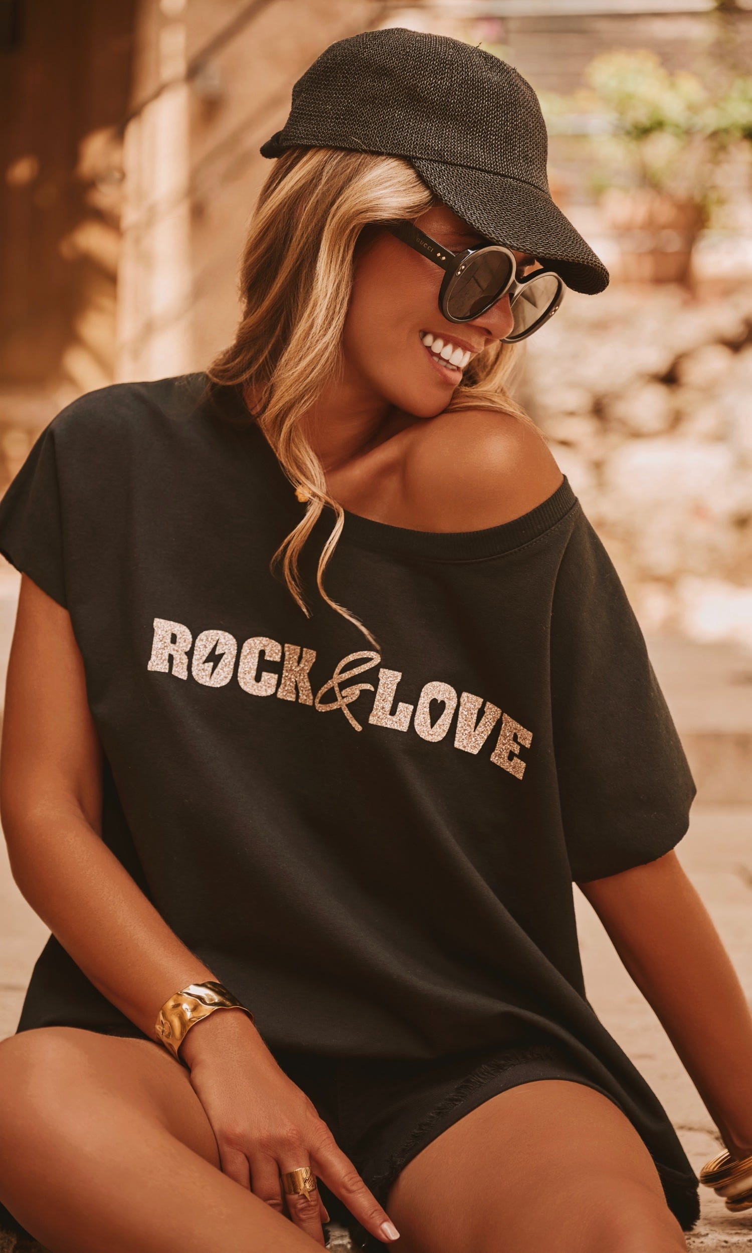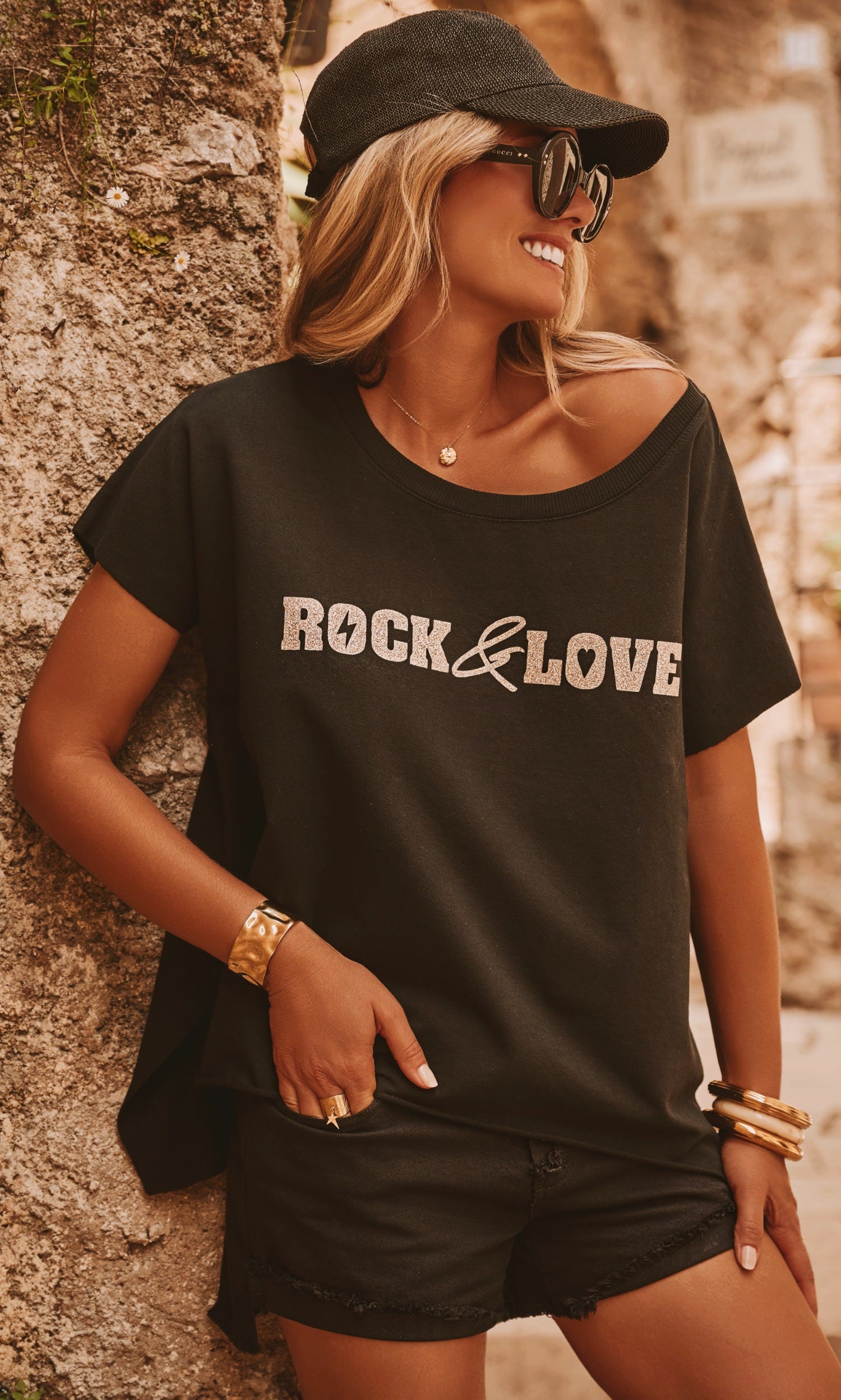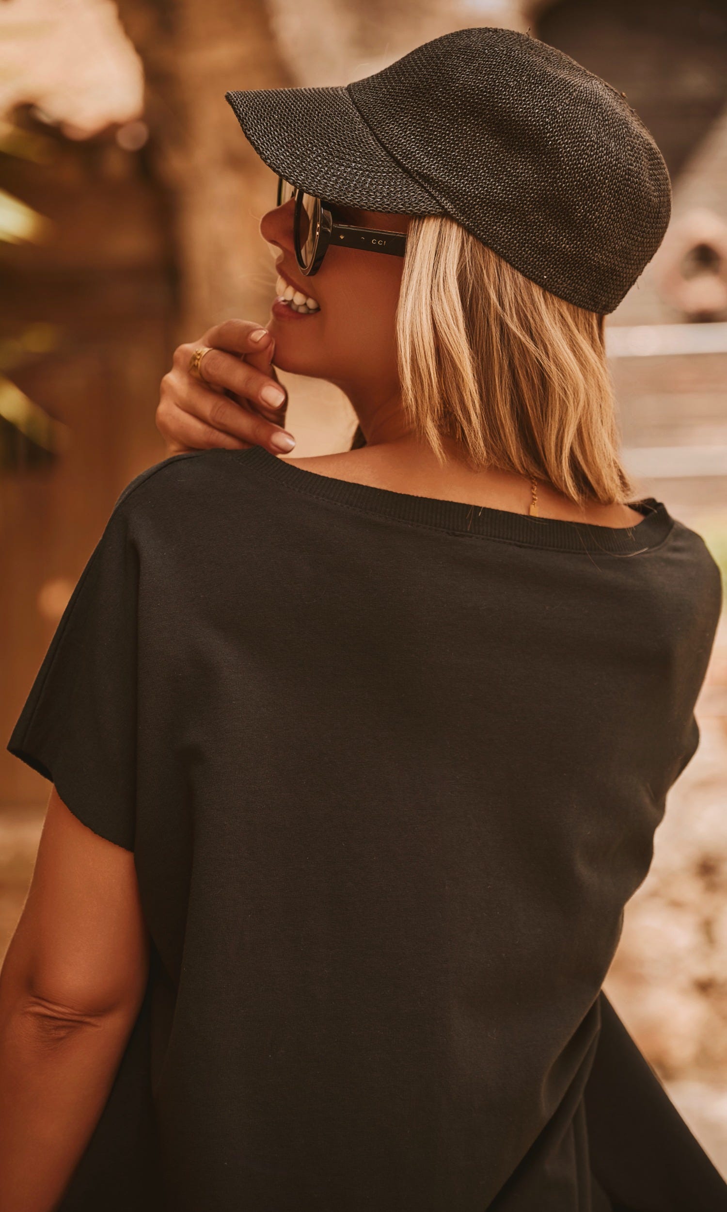 Craquez pour ce t-shirt noir loose à la coupe trapèze, qui se distingue par son col rond et ses manches courtes.