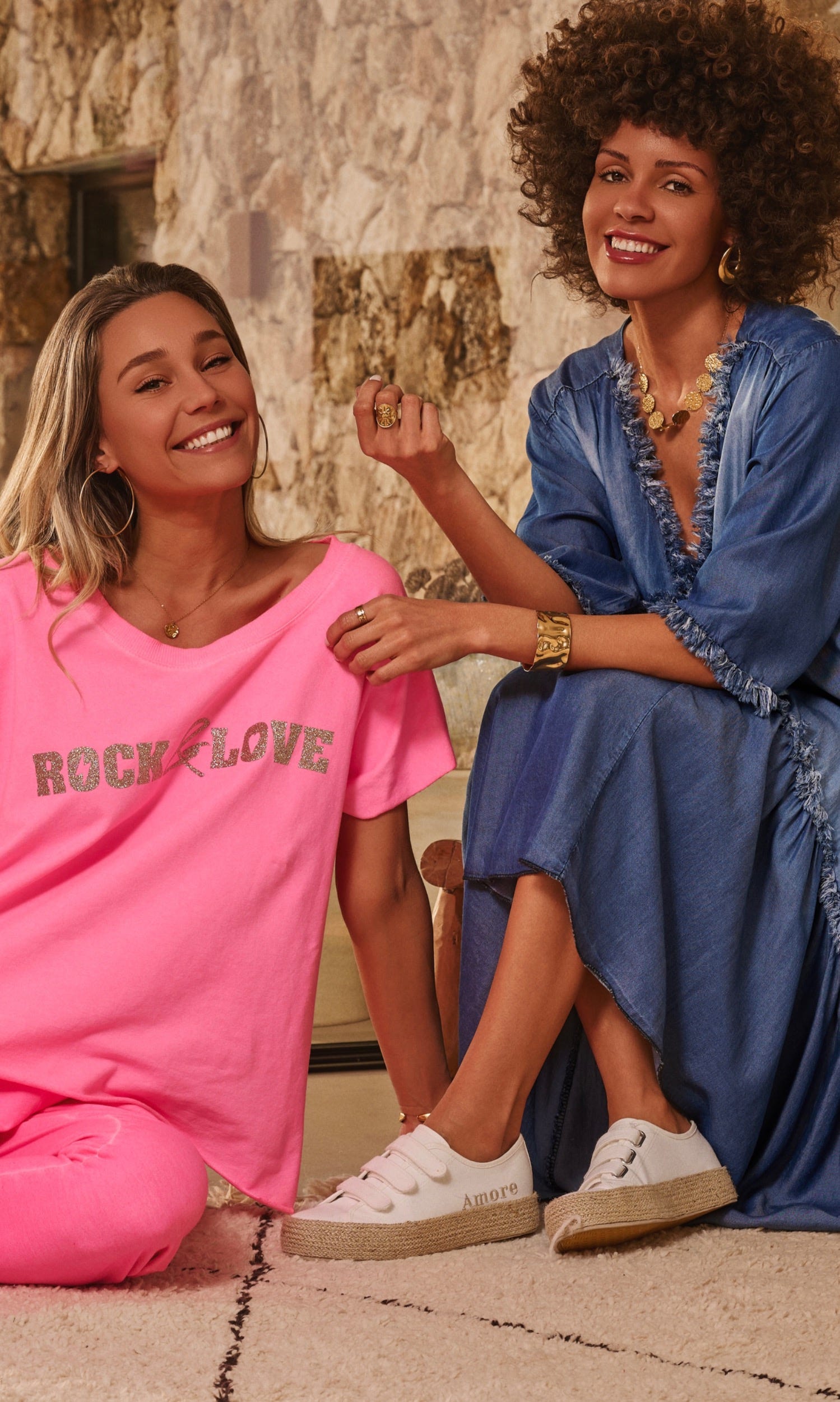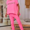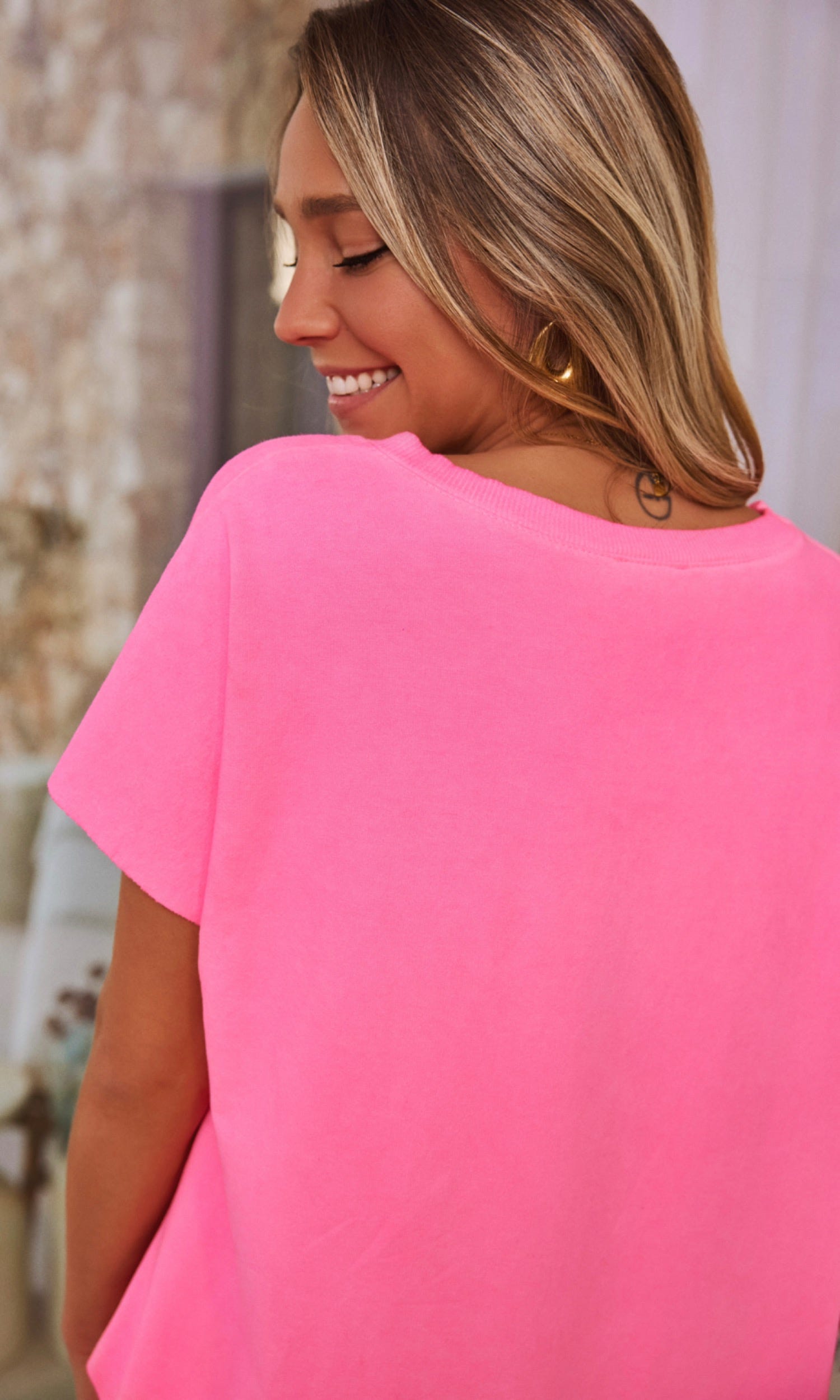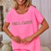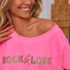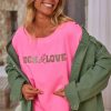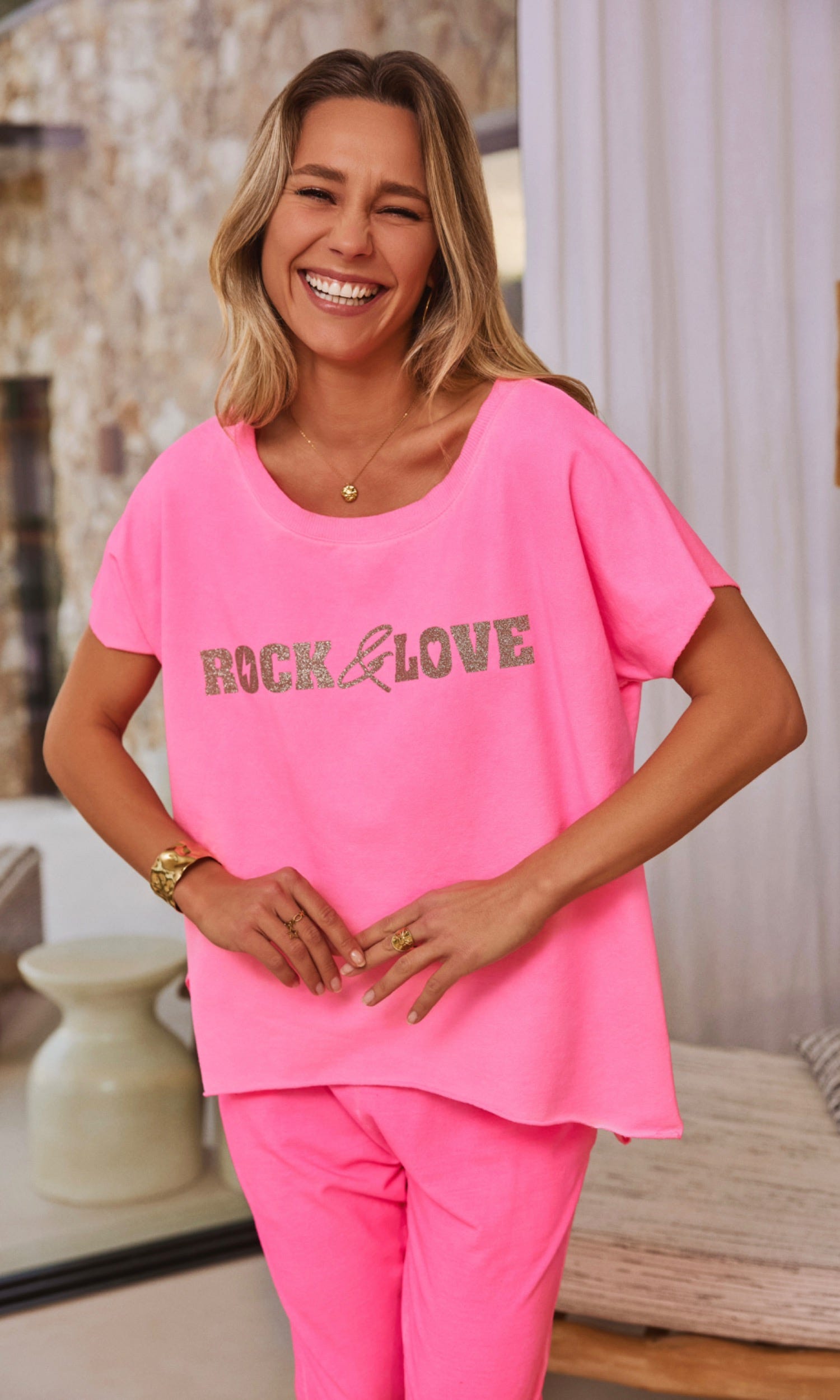 Adoptez le style audacieux avec ce t-shirt rose fluo loose à coupe trapèze avec son imprimé Rock&Love.