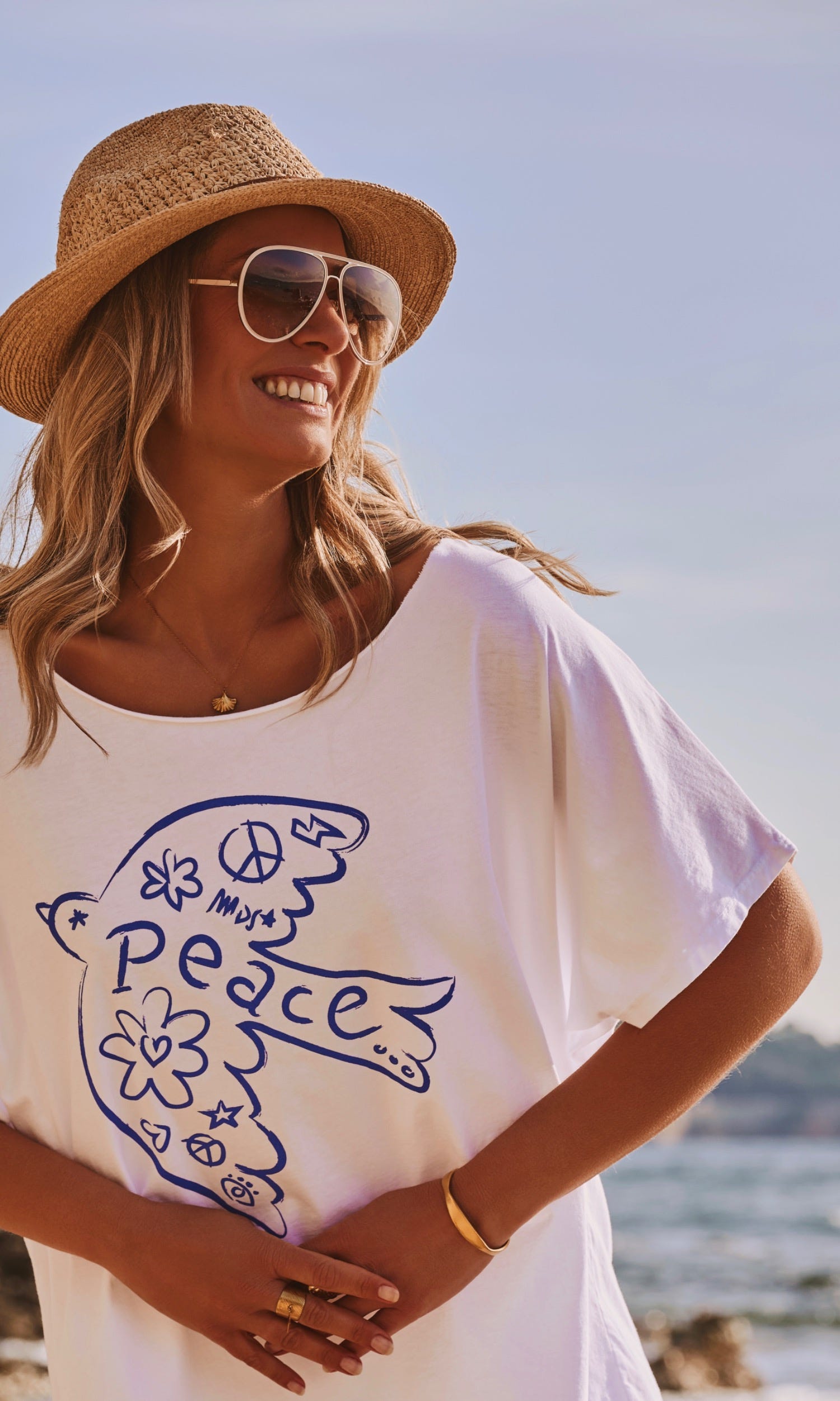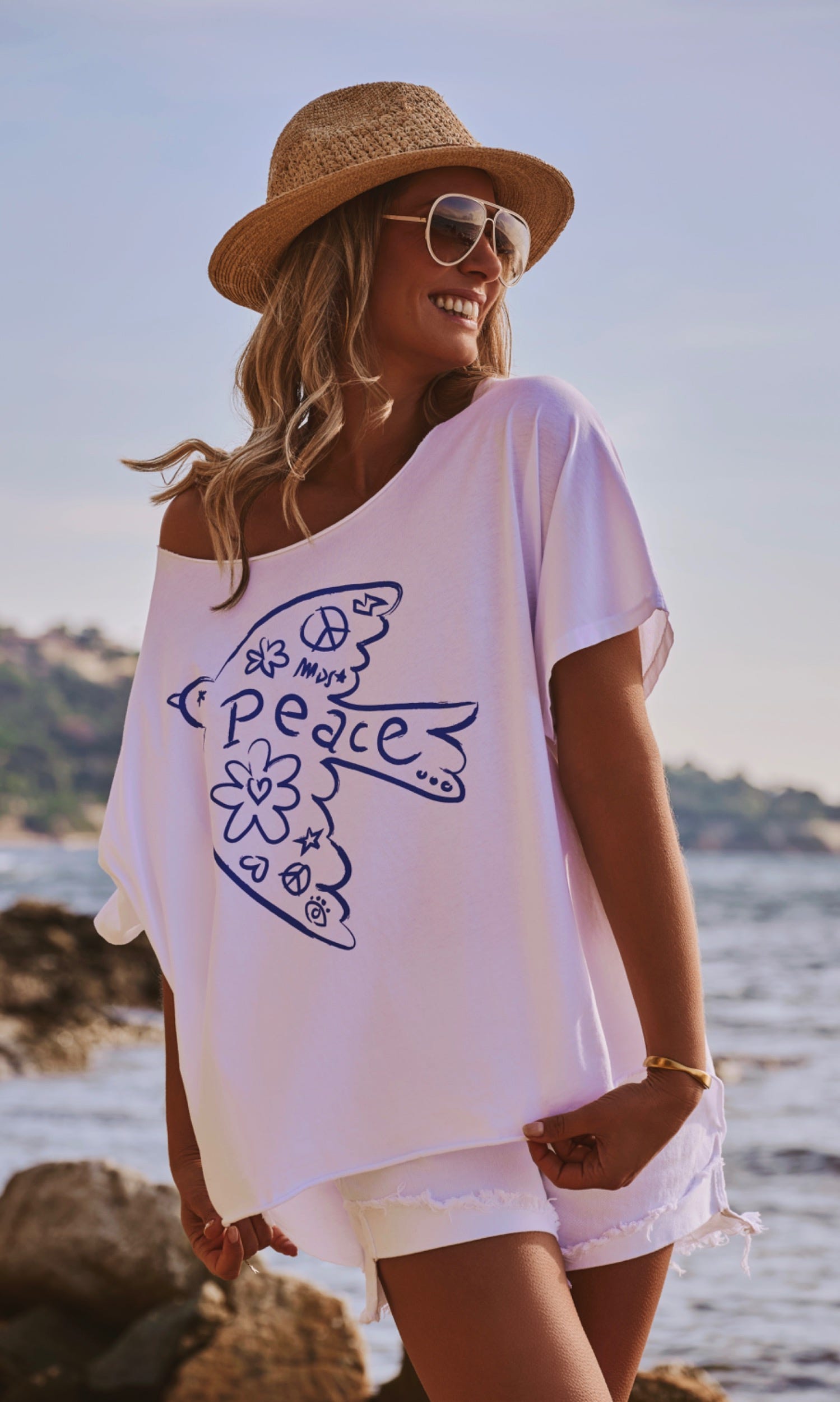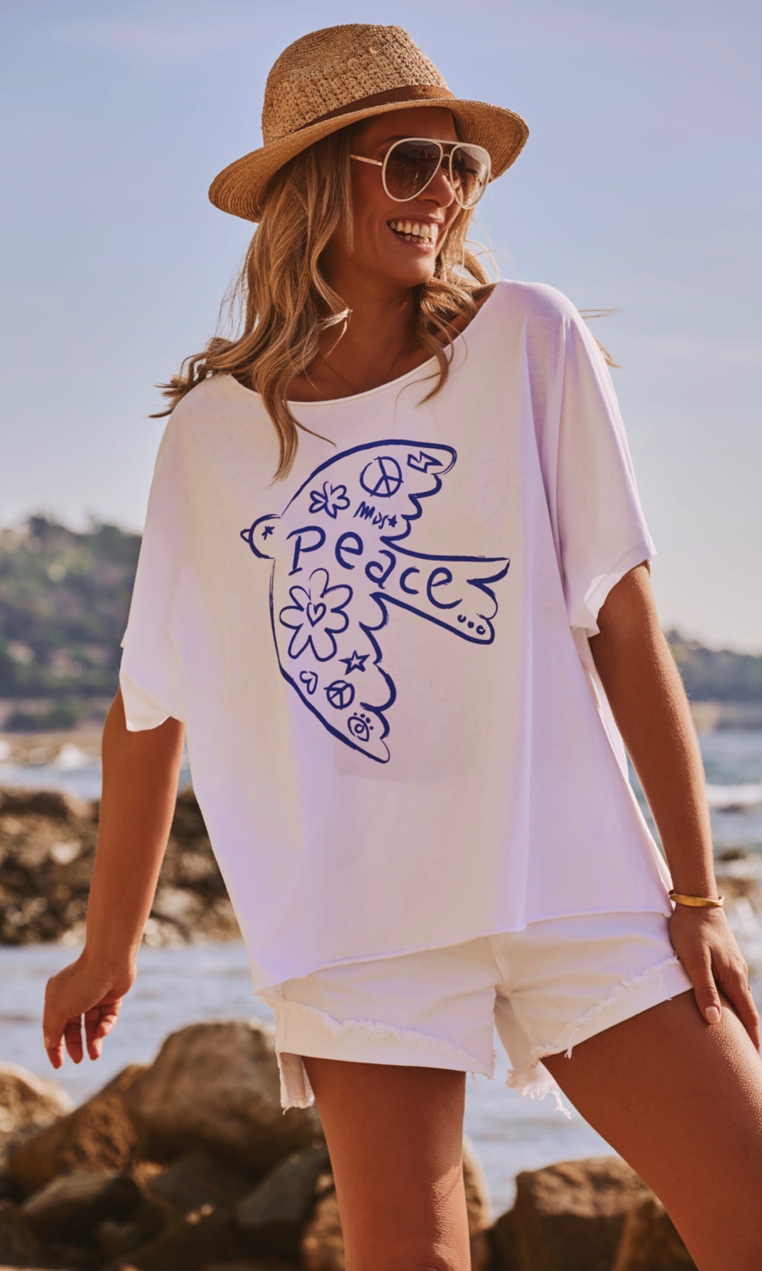 Son imprimé "Peace bird" en bleu électrique apporte une touche originale et tendance à votre garde-robe.