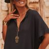 Optez pour l'élégance décontractée avec cette tunique oversize noire au col tunisien sans bouton.