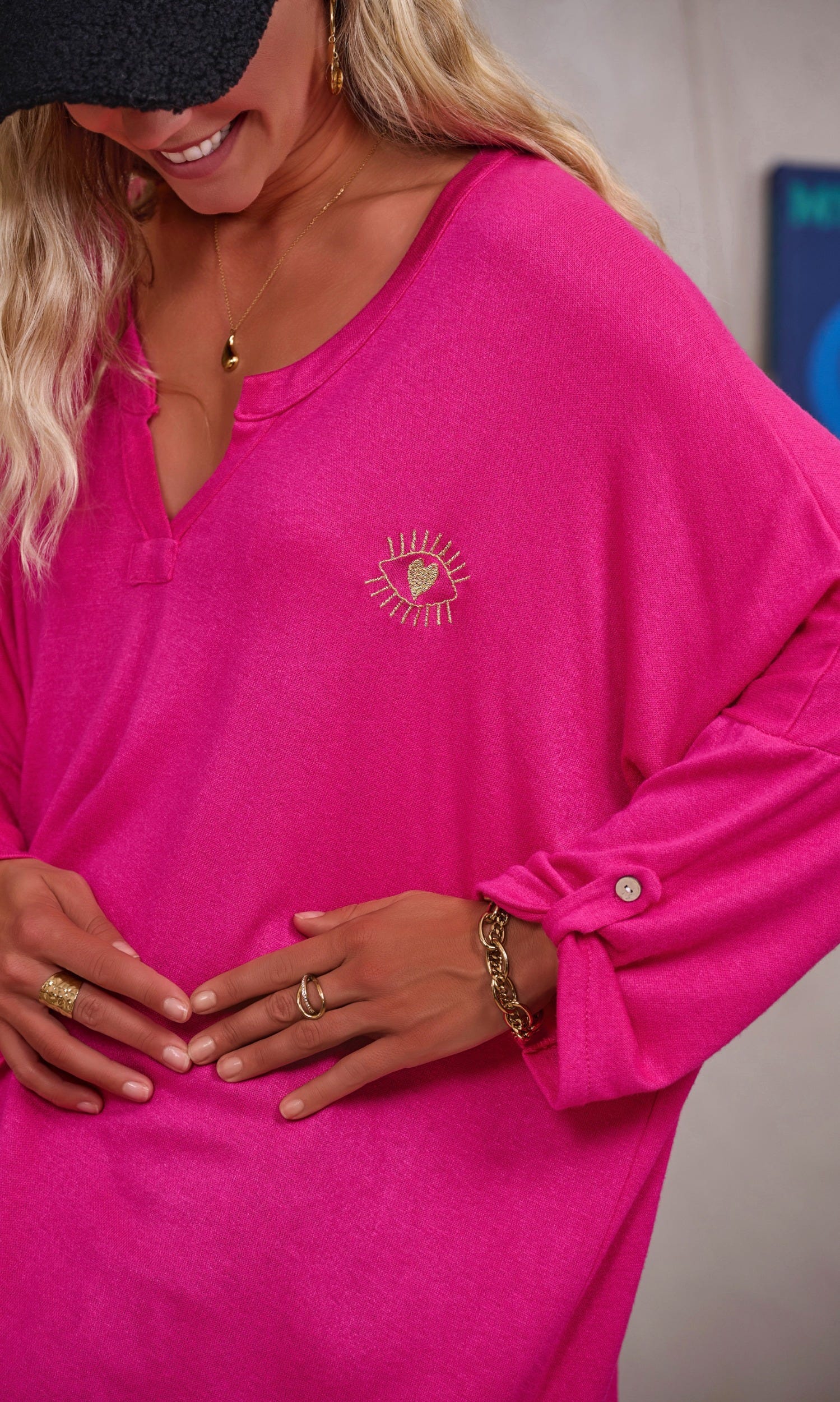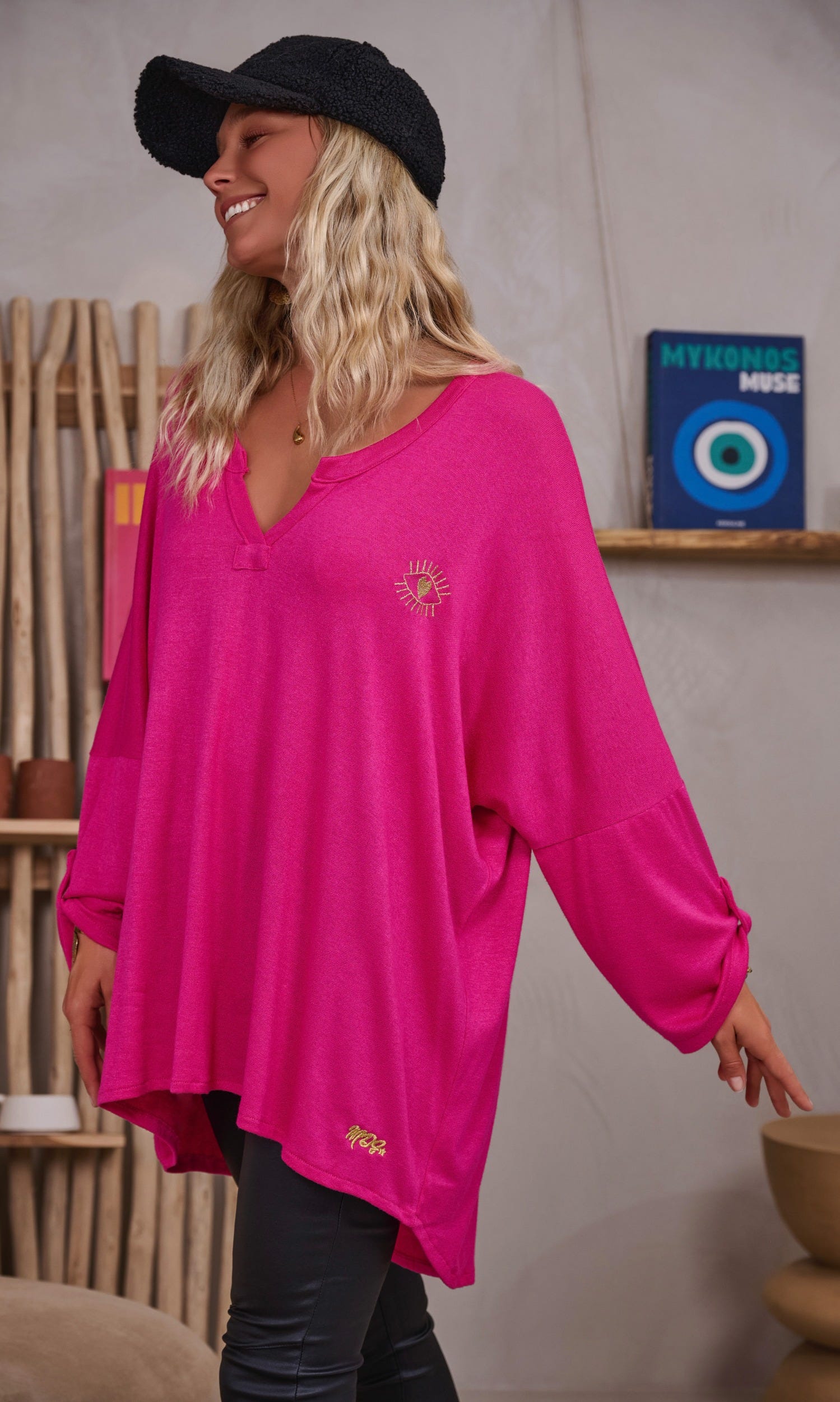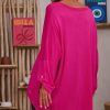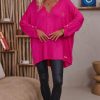 Découvrez notre tunique rose fuchsia en maille doudou, au style loose et oversize.