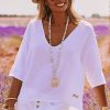 Découvrez notre tunique effet tissé, arborant un décolleté arrondi et généreux, ainsi qu'un subtil effet de transparence.