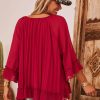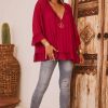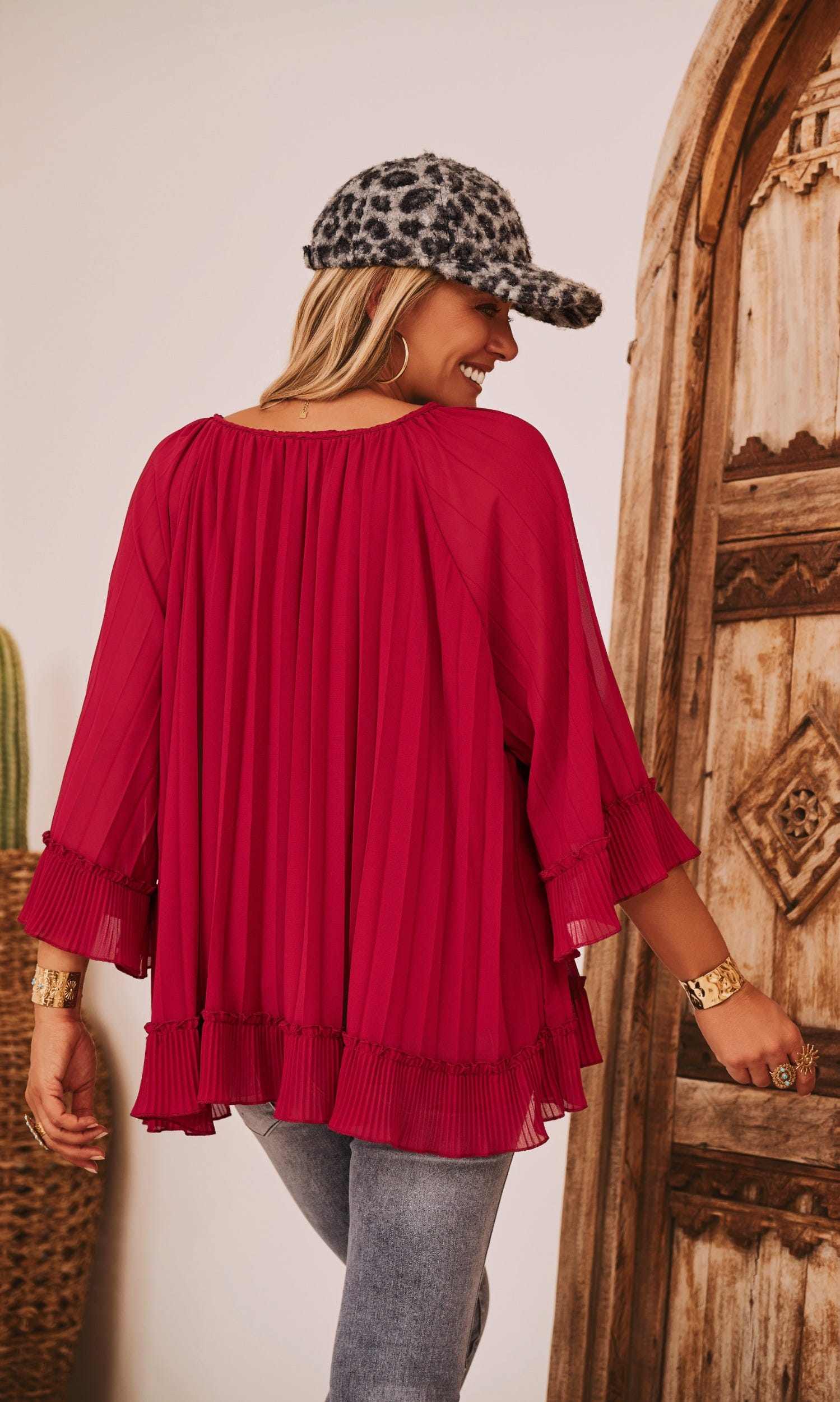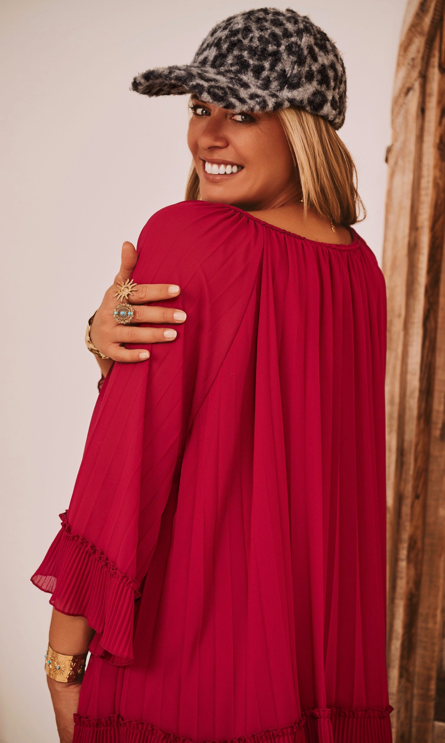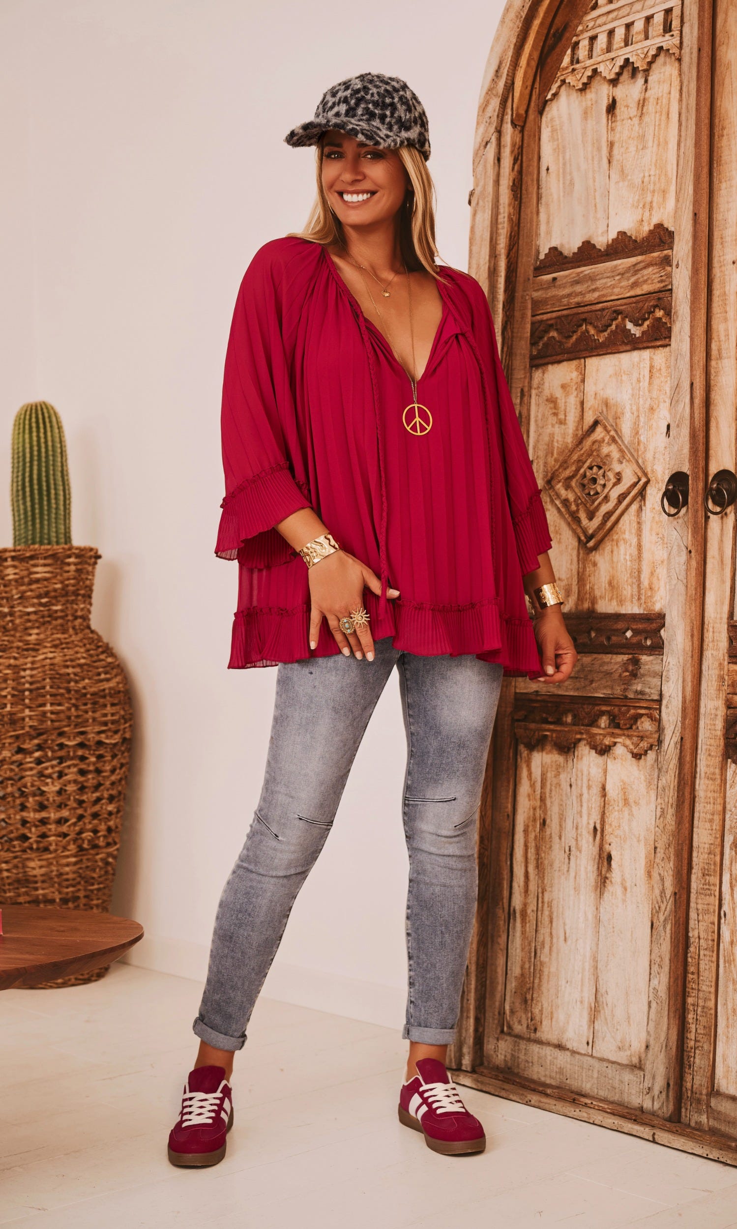 Découvrez notre tunique bordeaux en voile, élégamment plissée sur l'ensemble.