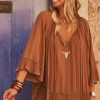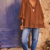 Découvrez notre tunique chocolat en voile, plissée sur l'ensemble pour une silhouette délicate.