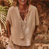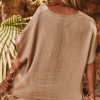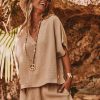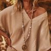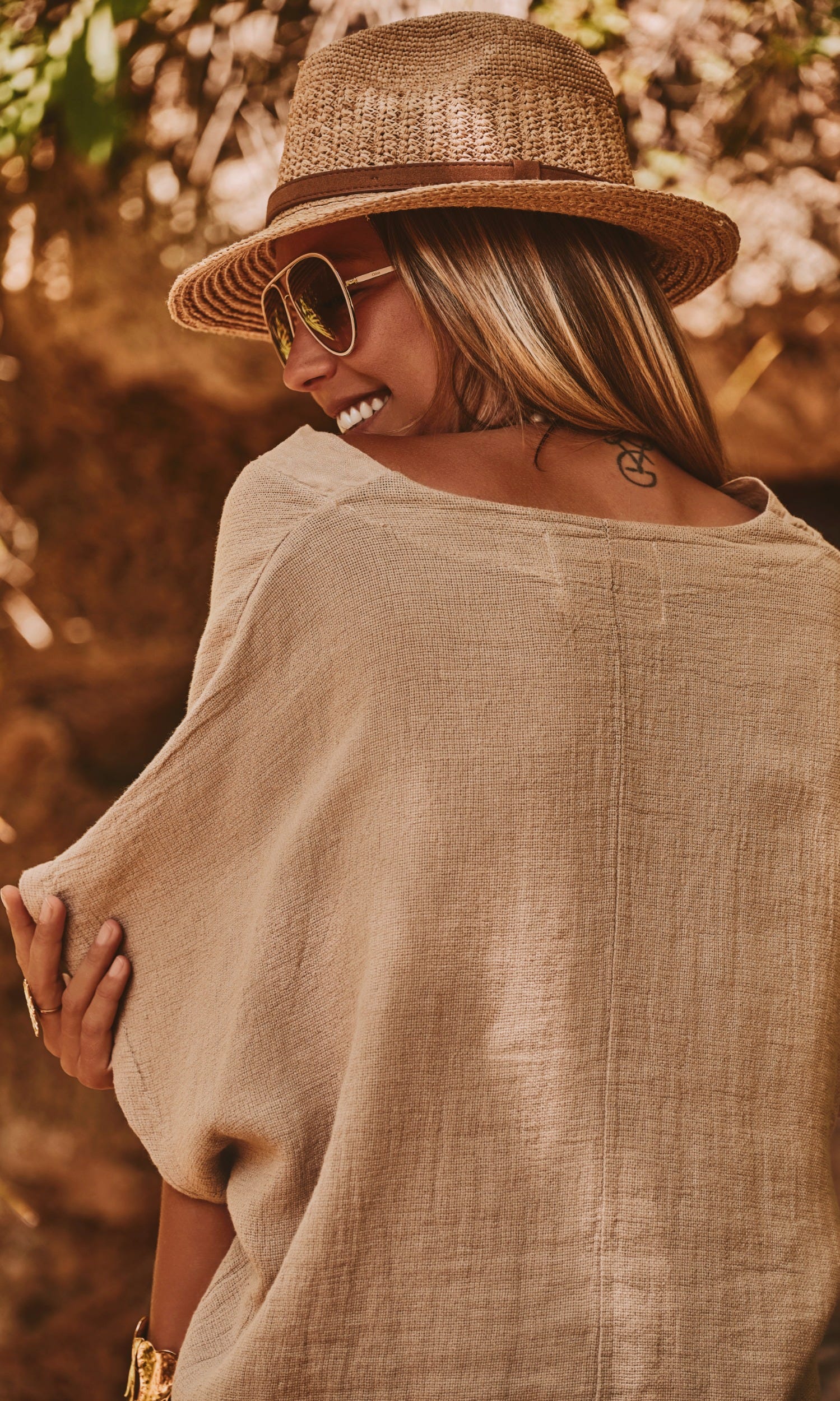 Découvrez cette tunique camel légère au subtil effet de transparence.