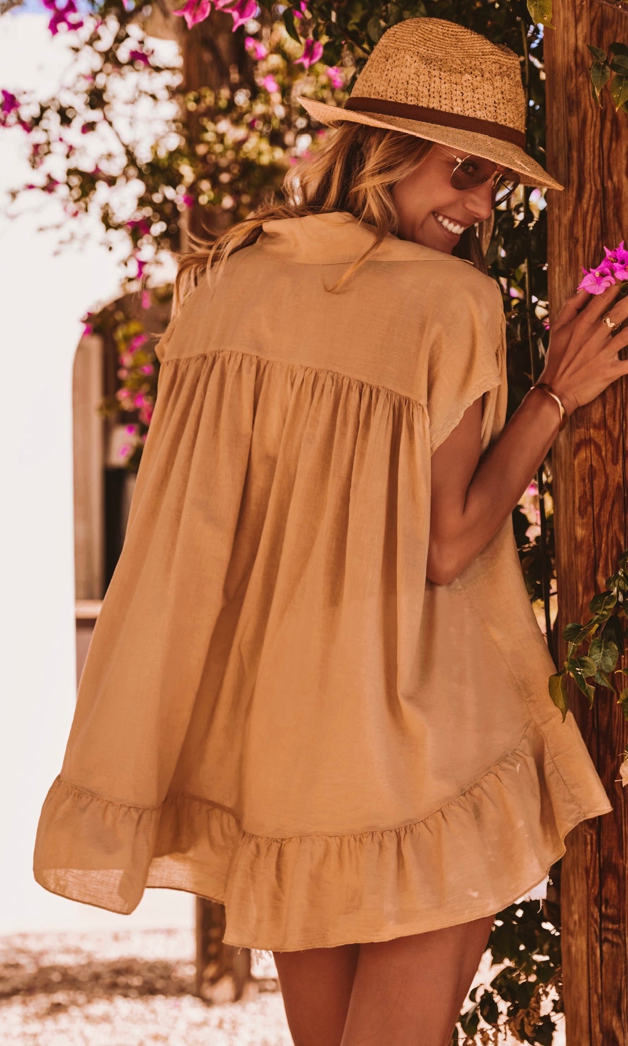 Découvrez notre tunique beige ultra-loose et oversize, parfaite pour un look décontracté.