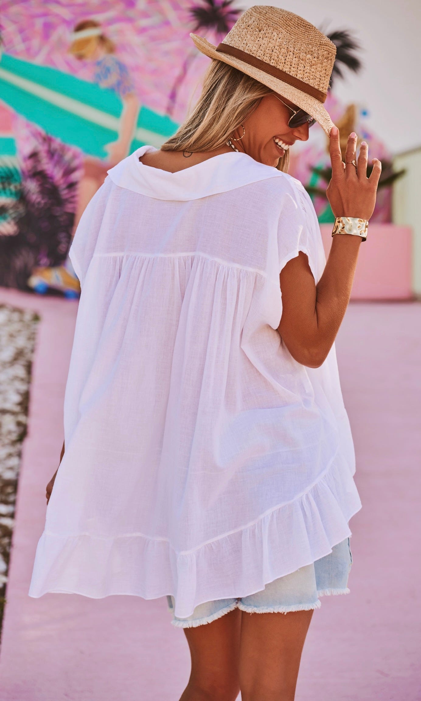 Découvrez cette tunique blanche au style décontracté, avec une coupe ultra-loose et oversize.