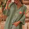Sa fermeture boutonnée sur toute la hauteur et sa broderie multicolore ajoutent une touche de sophistication.