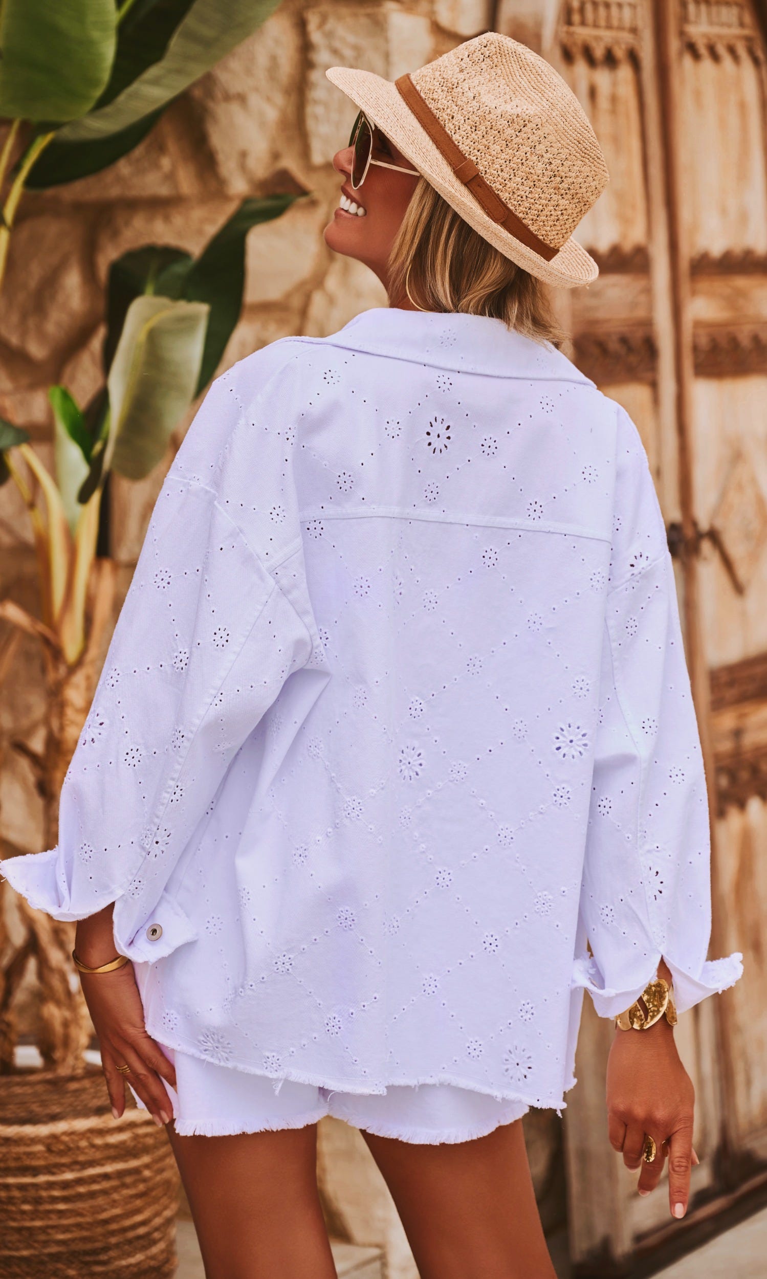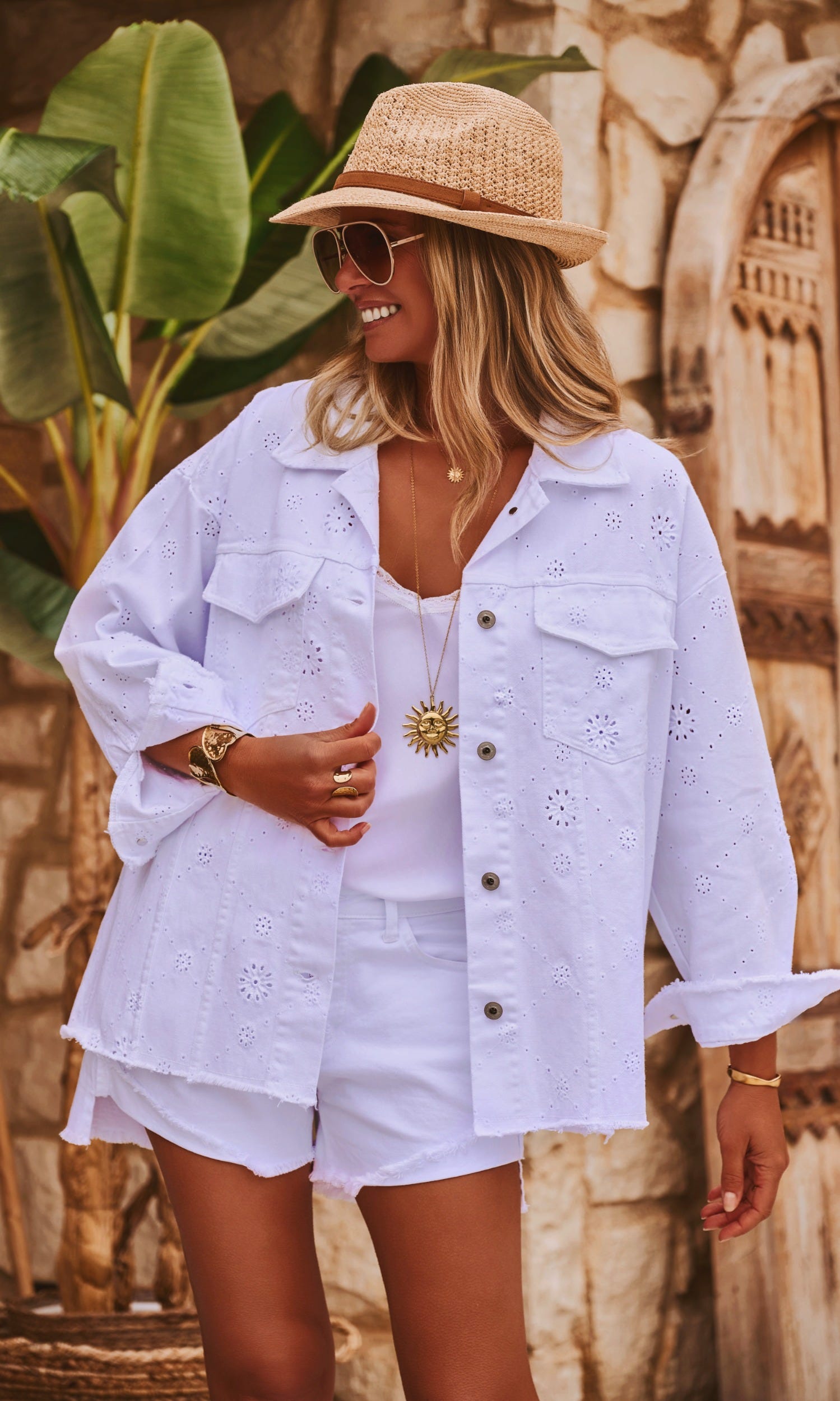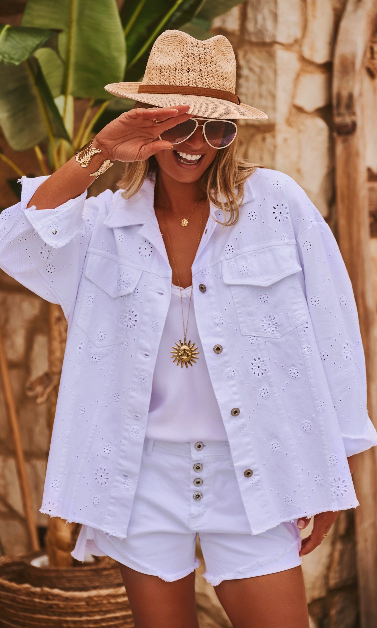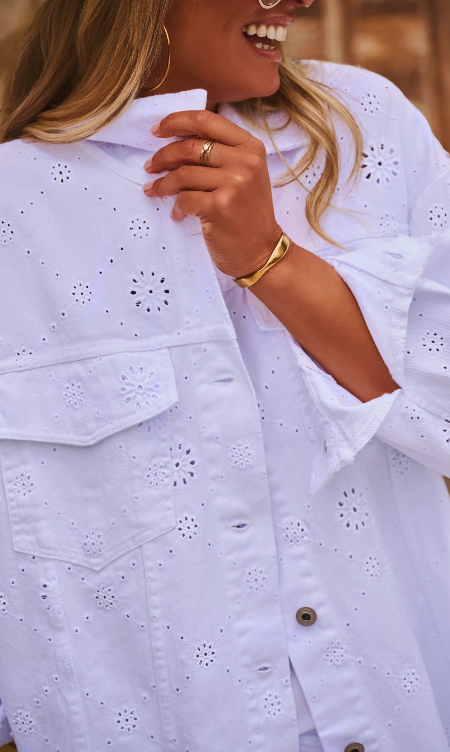 Découvrez notre élégante veste blanche en jean, dotée d'une broderie délicate.