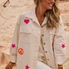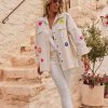 Les deux poches avant ajoutent du charme, tandis que les broderies moumoute multicolores embellissent le devant et les manches.