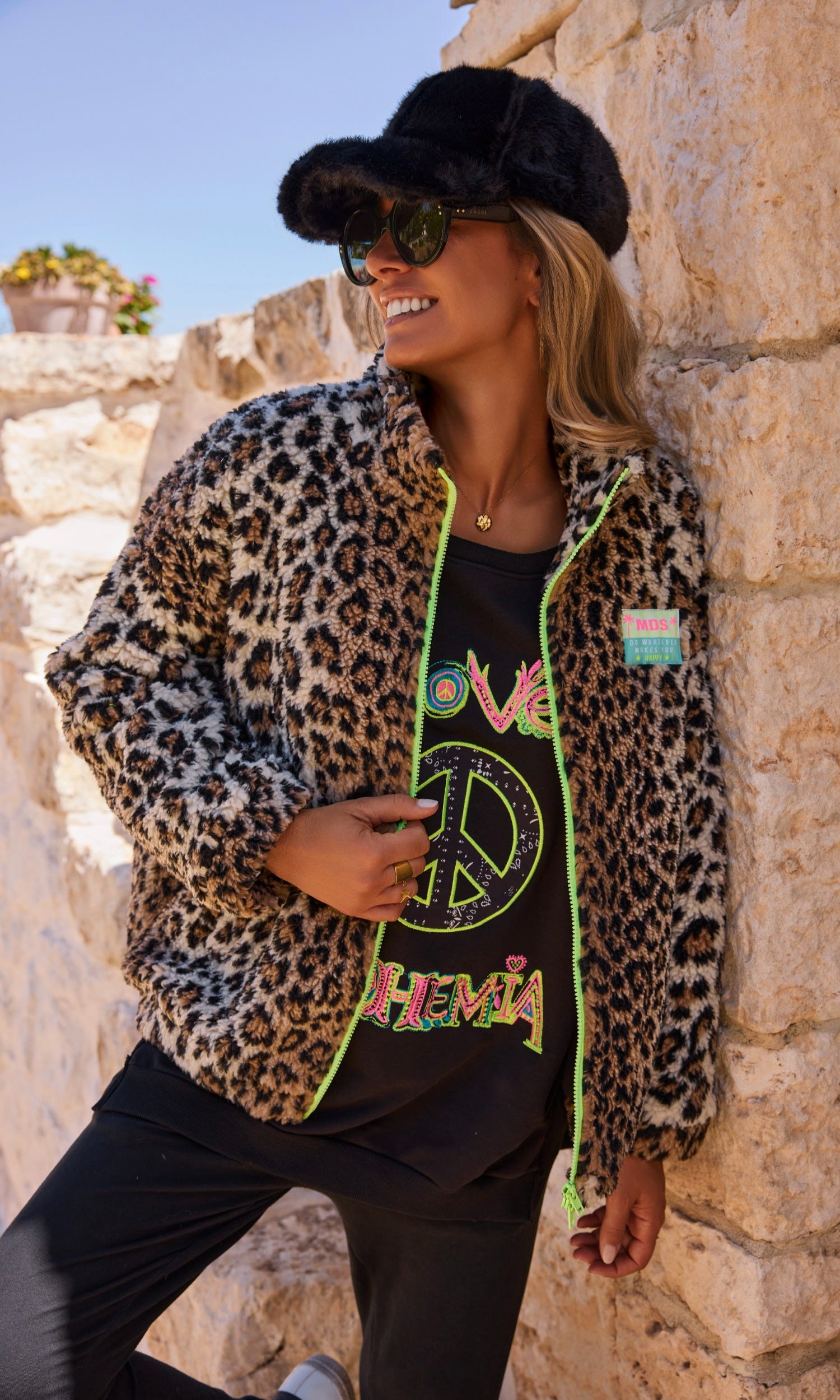 Optez pour un look audacieux avec notre veste polaire beige léopard oversize.