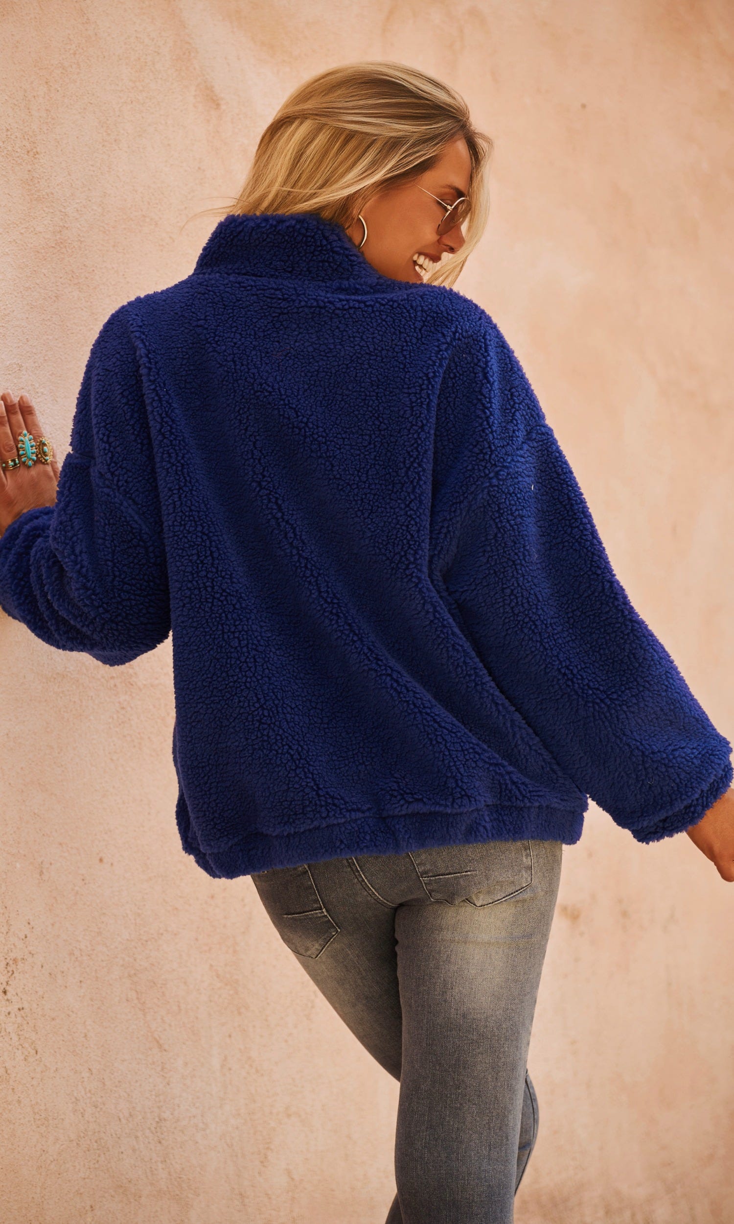 Découvrez notre veste polaire bleue marine oversize, parfaite pour un style décontracté et confort optimal.