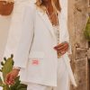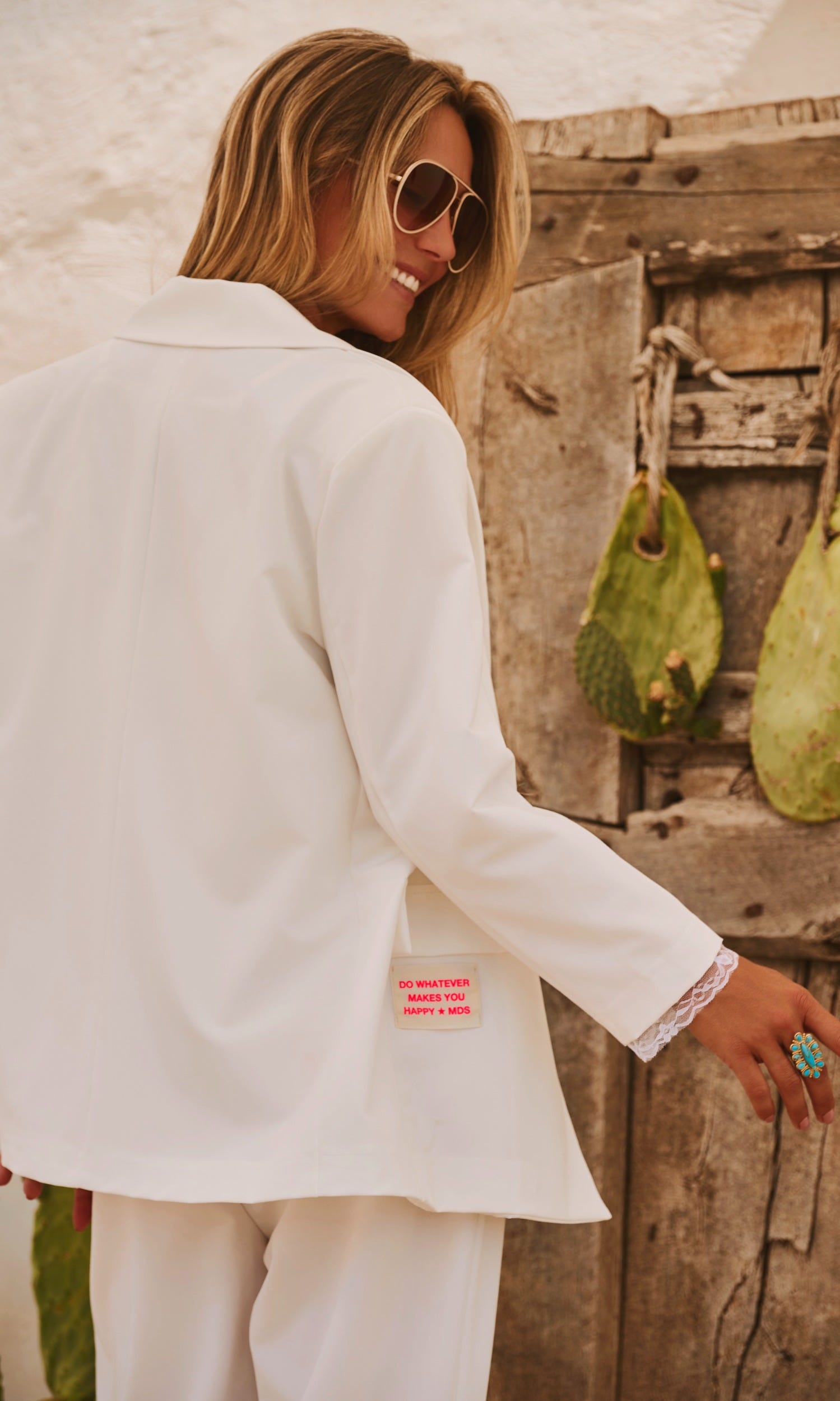 Découvrez notre élégante veste blanc cassé à la coupe droite, idéale pour sublimer vos tenues.
